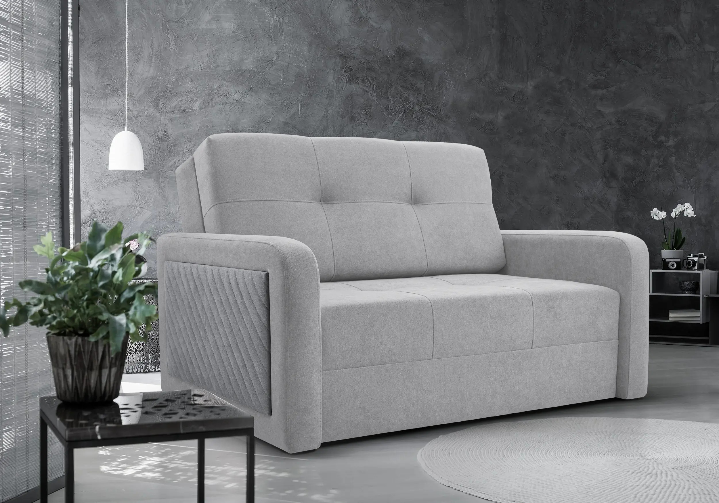 Kanapa z funkcją spania i pojemnikiem na pościel. Tkanina typu plecionka. 2 osobowa.