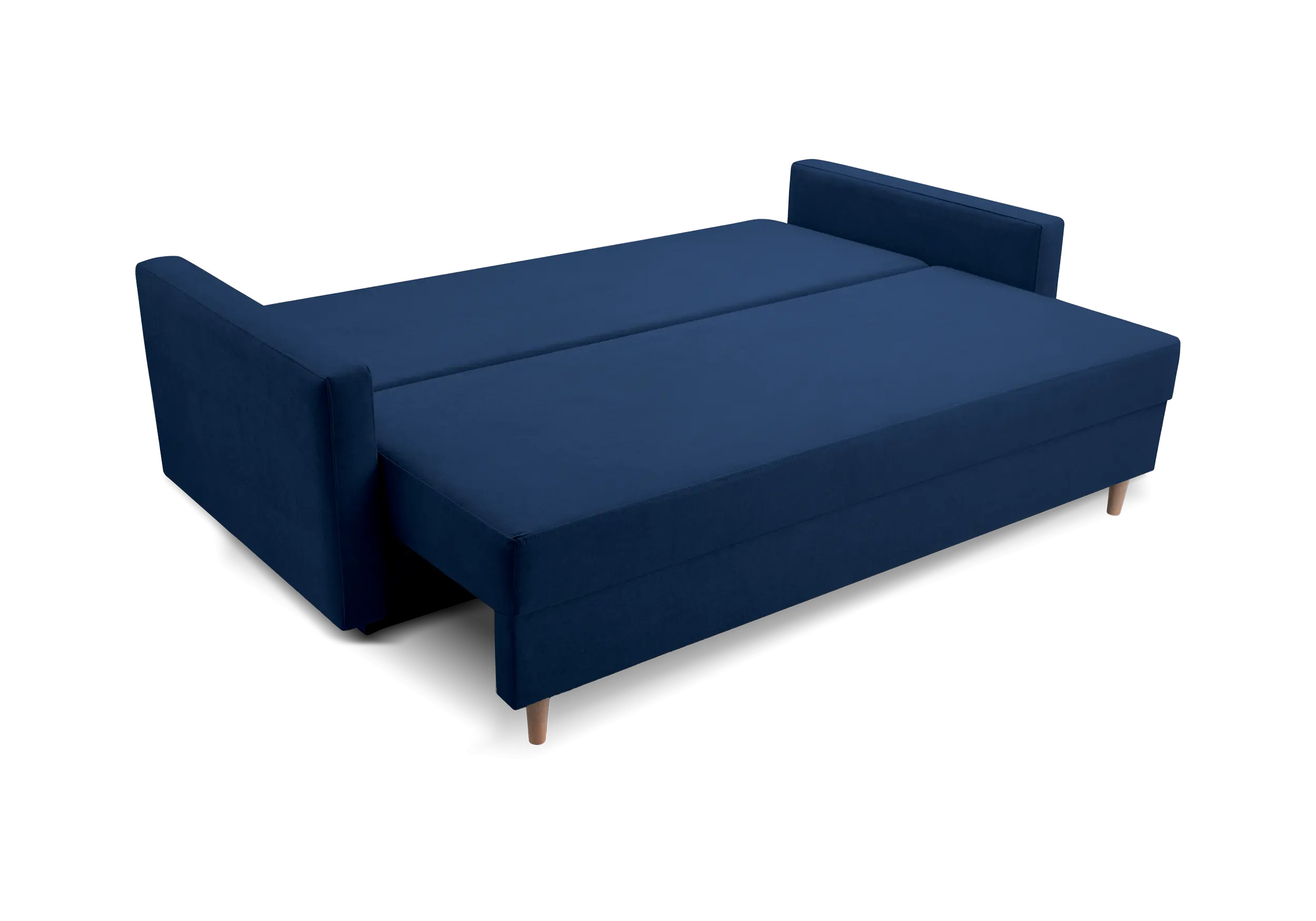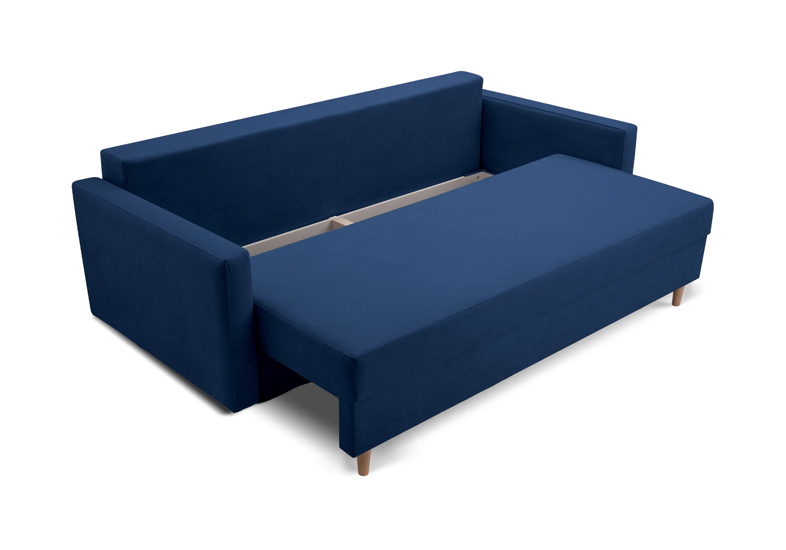Kanapa z funkcją spania i pojemnikiem na pościel. Tkanina typu velvet. 3 osobowa