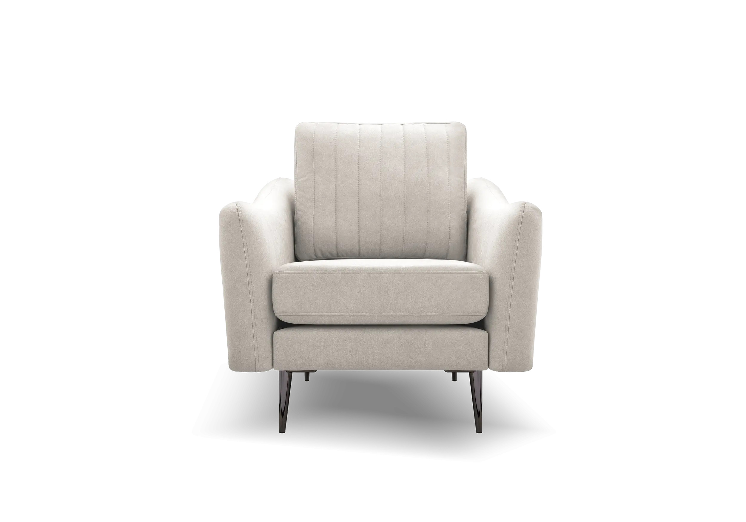 Fotel Cori zdobiony pionowymi pikowaniami.