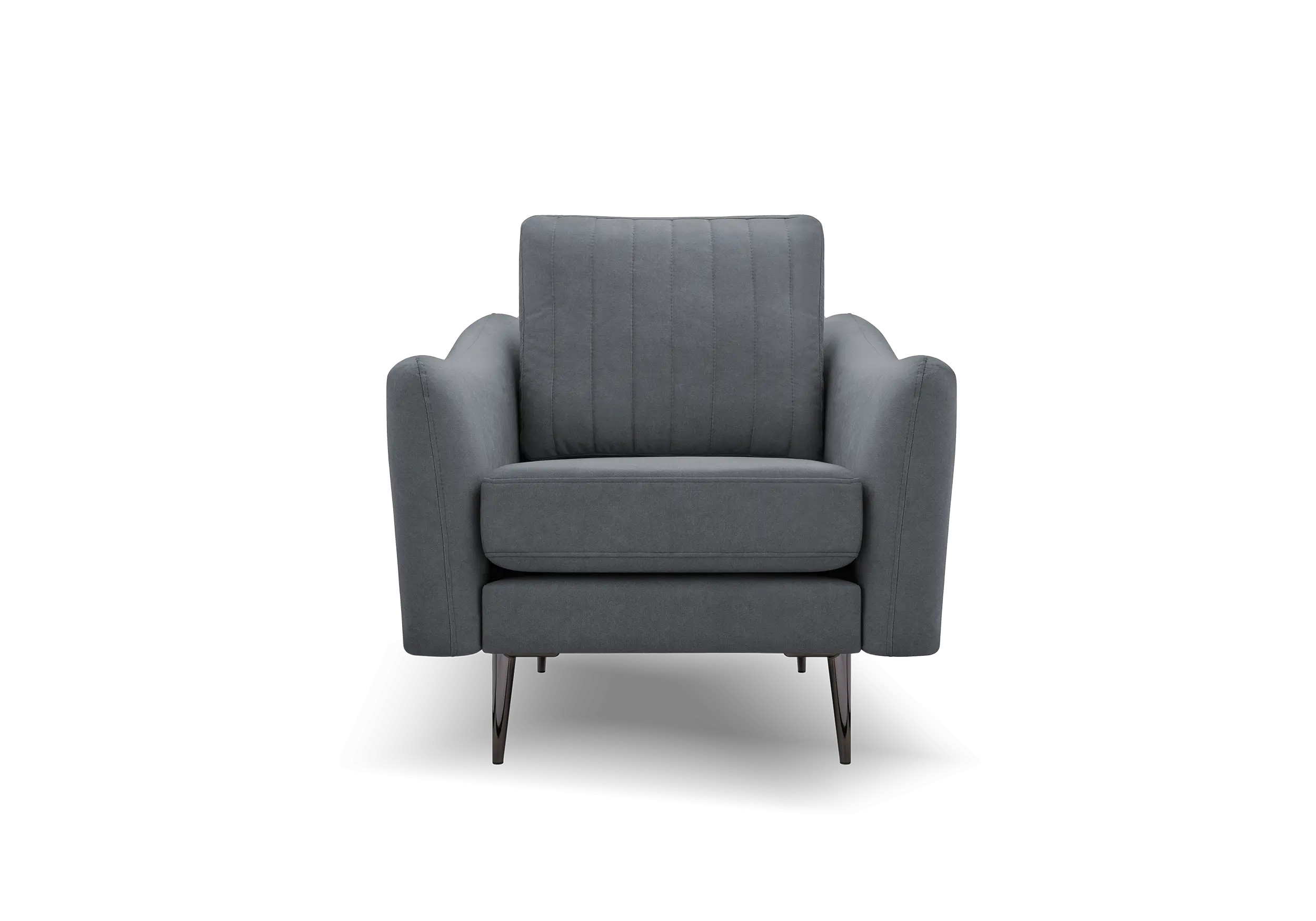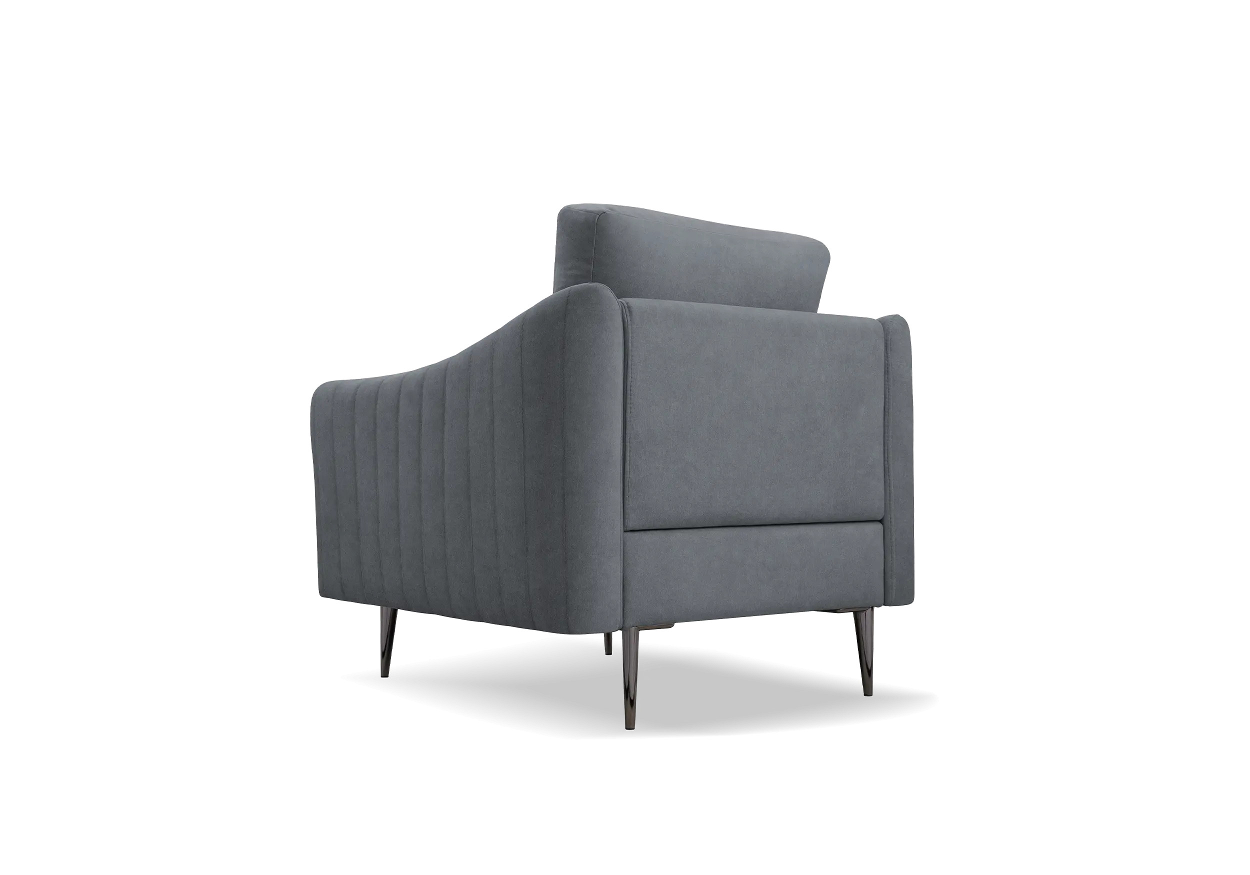 Fotel Cori zdobiony pionowymi pikowaniami.