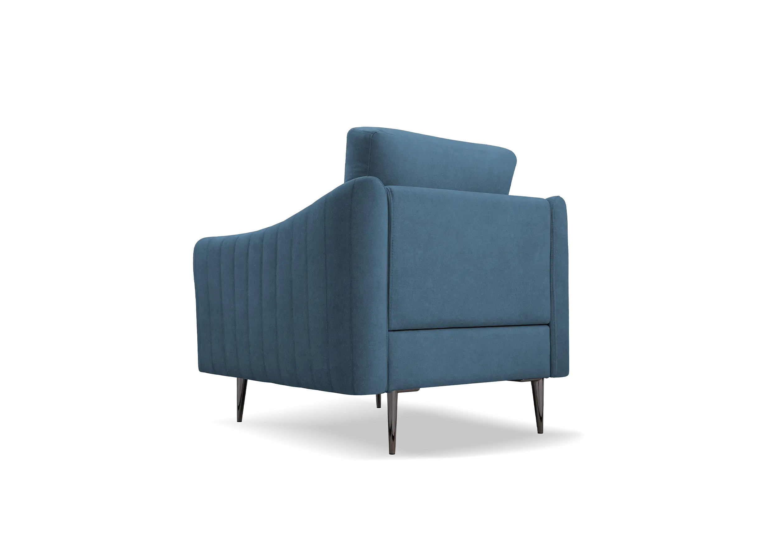 Fotel Cori zdobiony pionowymi pikowaniami.