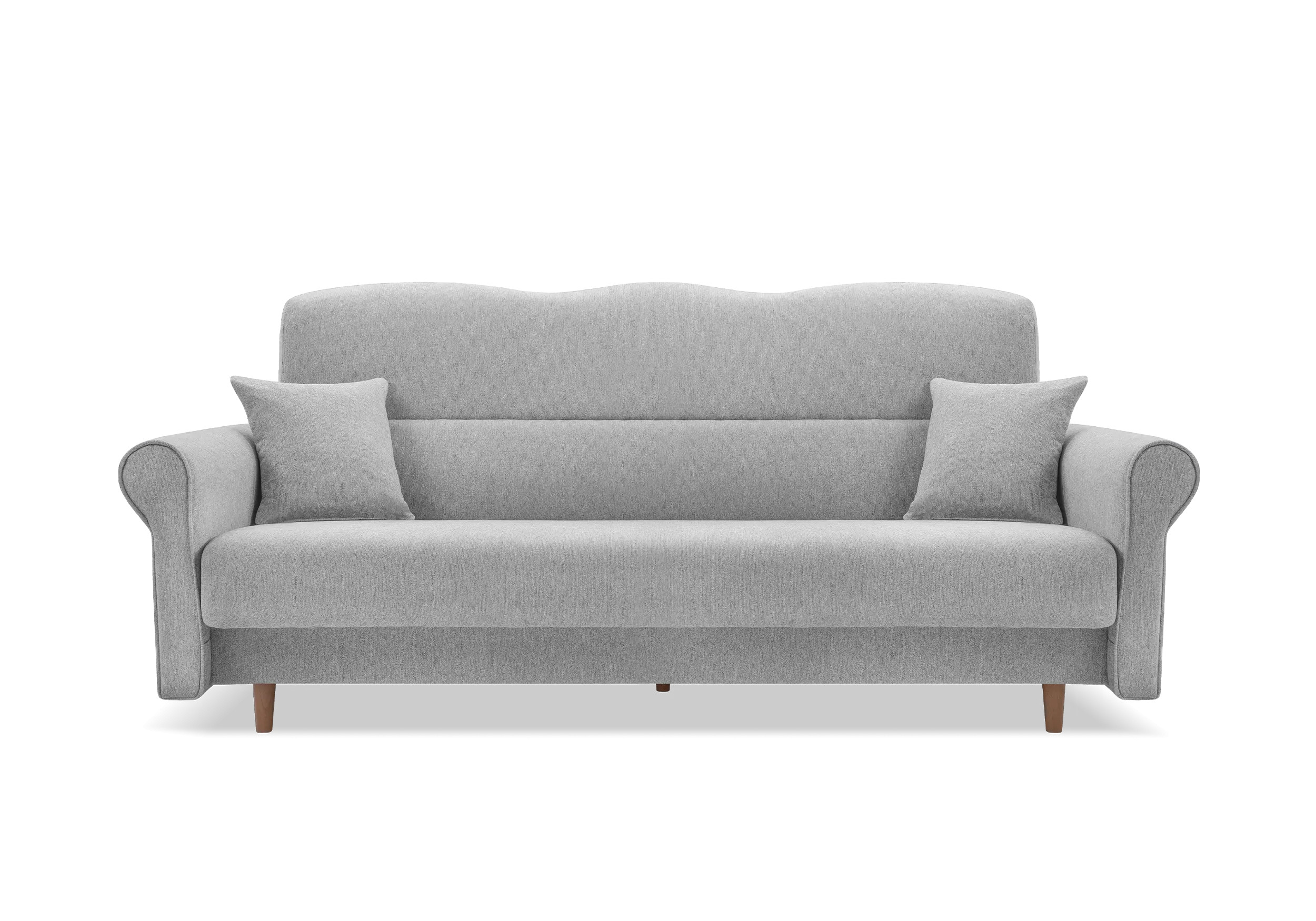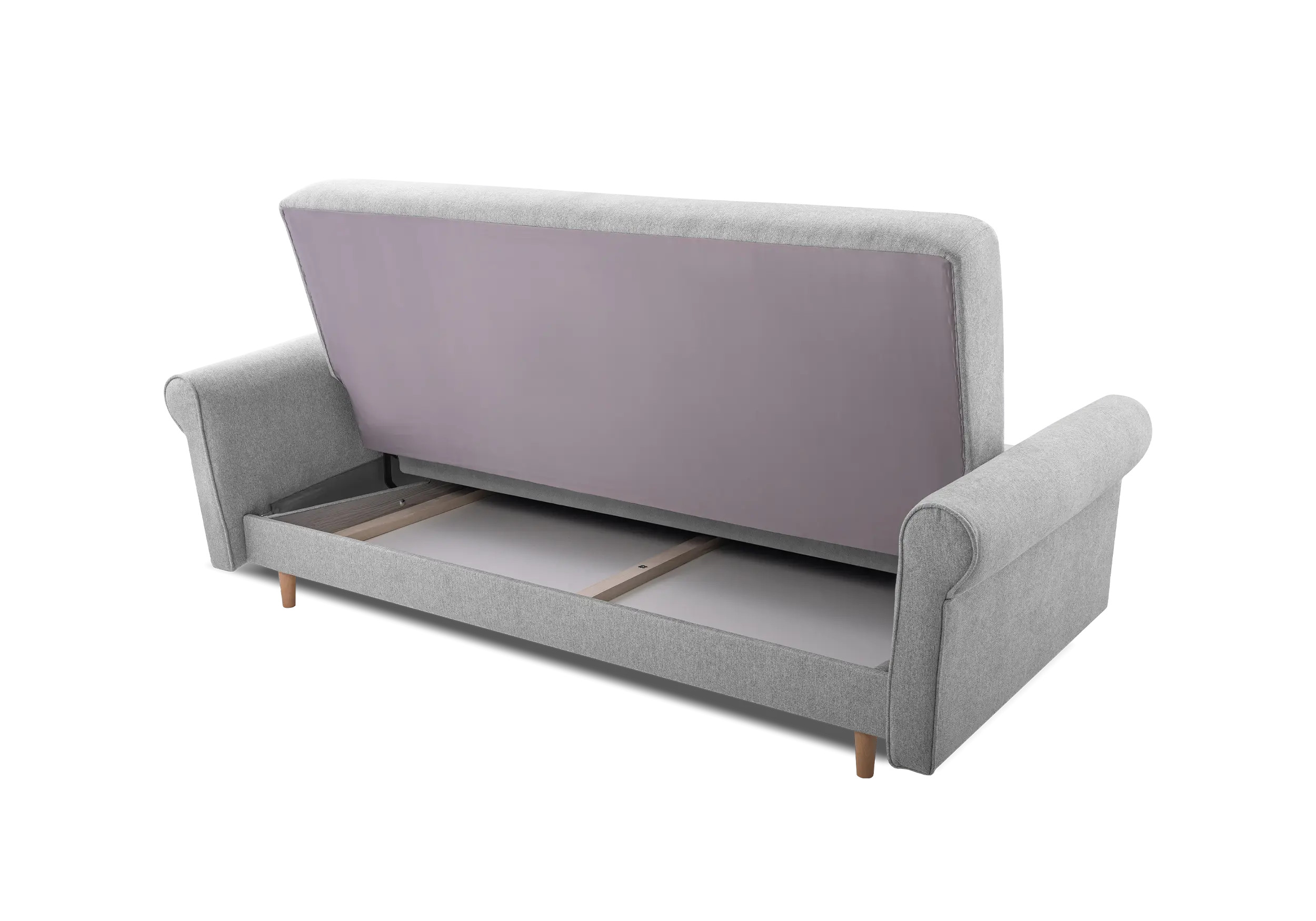 Kanapa Loft 3 świetnie współgra z wnętrzami urządzonymi w stylu skandynawskim bądź nowoczesnym. Cechą charakterystyczną tej kanapy są drewniane nóżki, doskonale wyprofilowane, niezwykle wygodne oparcie, które świetnie dopasuje się do pleców zapewniając komfort wypoczynku. posiada powierzchnię spania 133×183 cm oraz pojemnik na pościel.