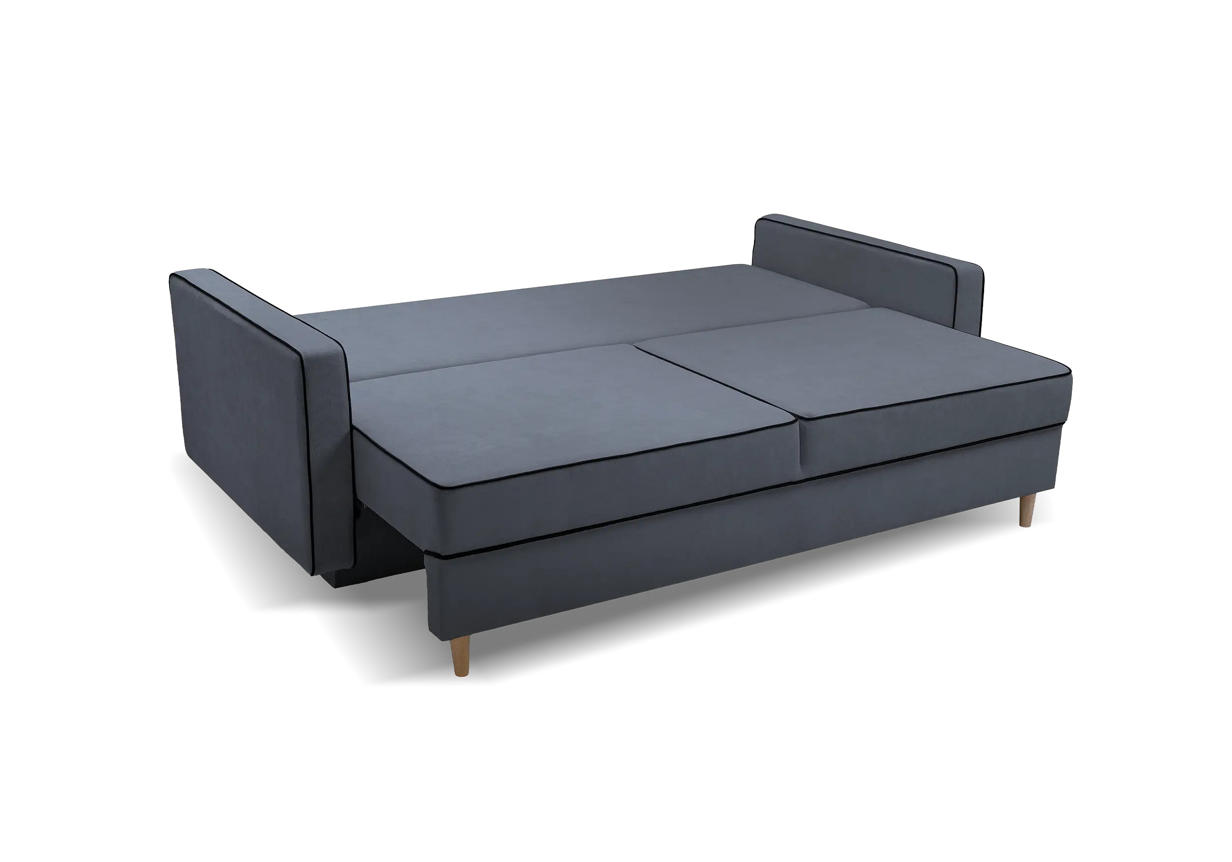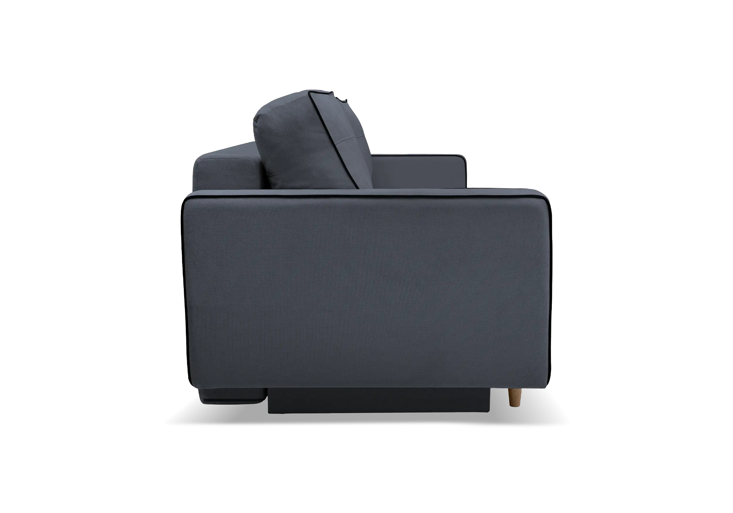 Kanapa Fasta w skandynawskim stylu to mebel pasujący do każdego wnętrza. Posiada funkcję spania o wymiarach 190×152 cm, a jej rozkładanie jest proste i szybkie. Pojemnik na pościel jest dodatkowym atutem. Sposób wykonania kanapy i użyte materiały zapewniają wysoki komfort wypoczynku.
