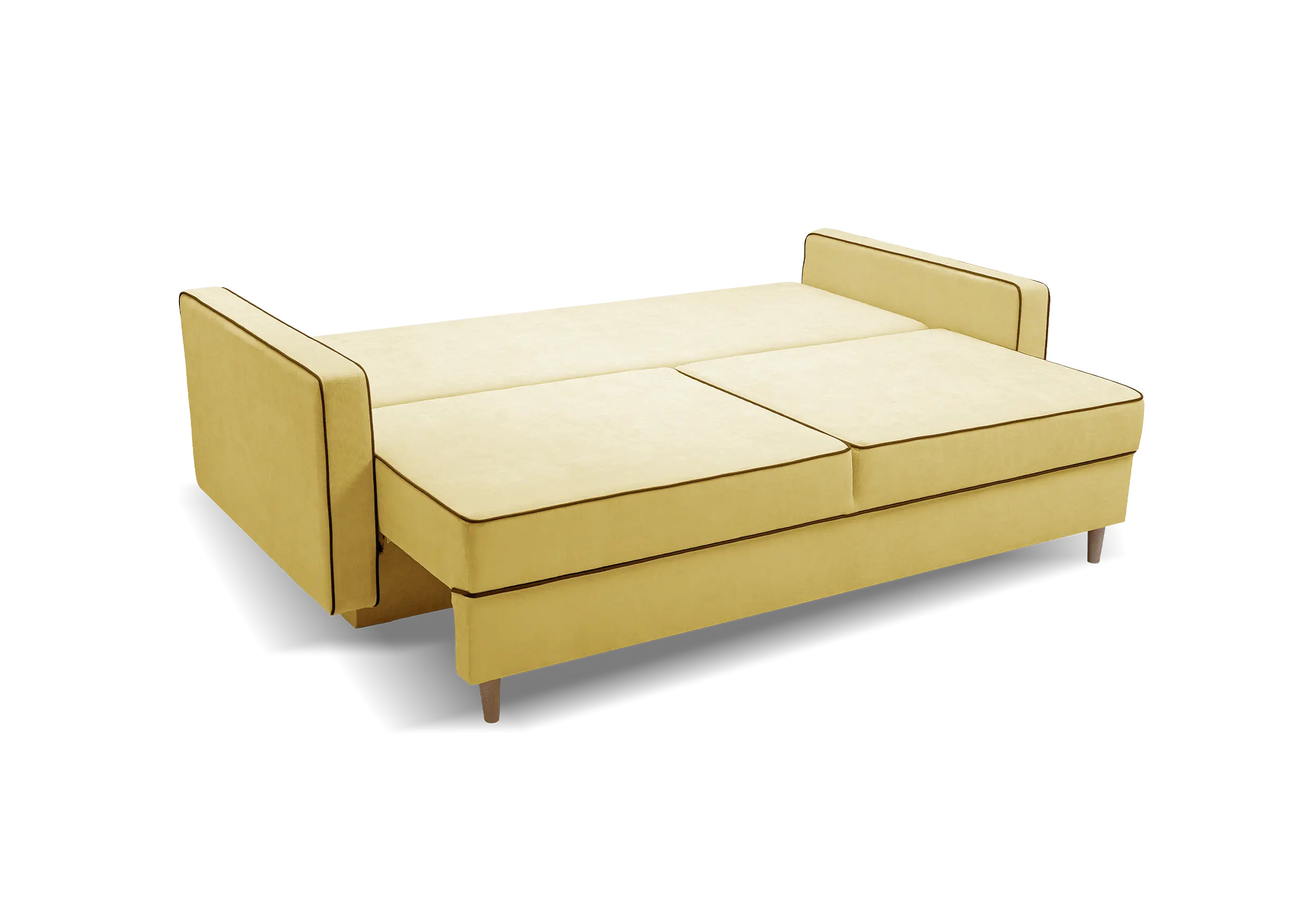 Kanapa Fasta w skandynawskim stylu to mebel pasujący do każdego wnętrza. Posiada funkcję spania o wymiarach 190×152 cm, a jej rozkładanie jest proste i szybkie. Pojemnik na pościel jest dodatkowym atutem. Sposób wykonania kanapy i użyte materiały zapewniają wysoki komfort wypoczynku.