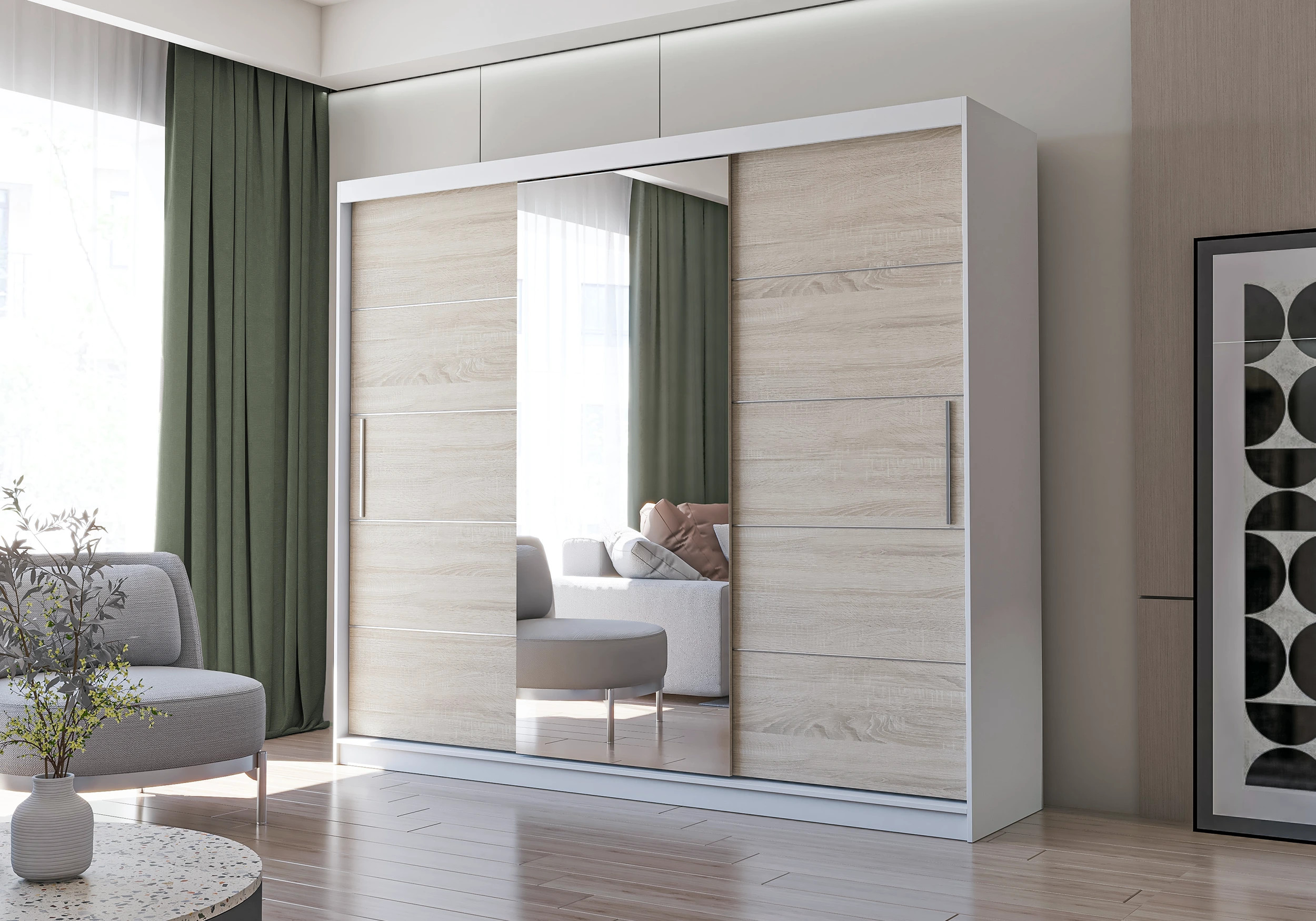 Biały, Dąb sonoma z lustrem