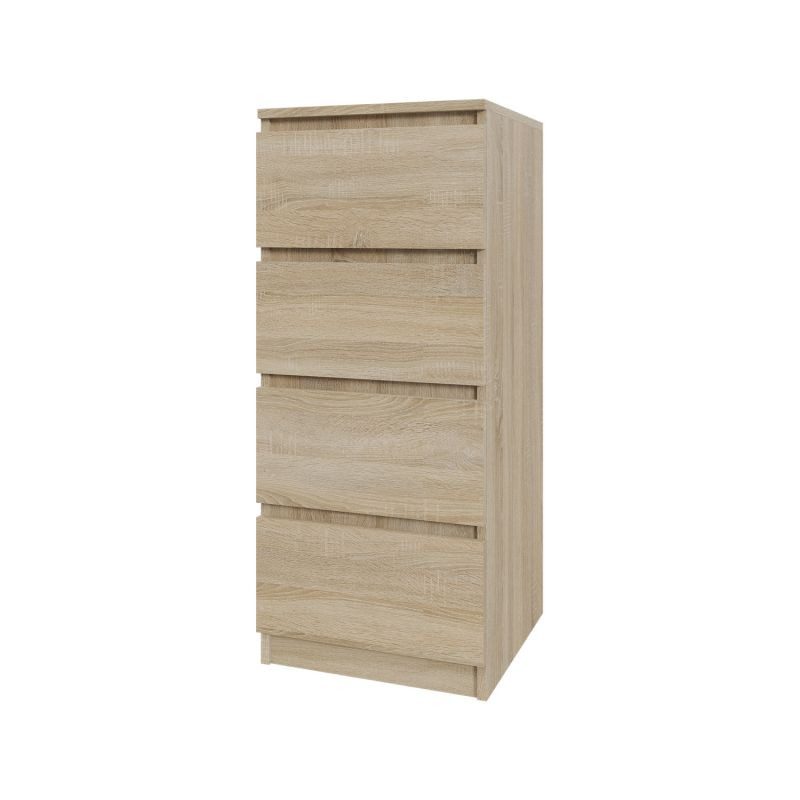 Ten czteroszufladowy mebel w salonie świetnie sprawdzi się jako praktyczne miejsce na książki, gazety i ważne dokumenty. W holu i przedpokoju czy korytarzu kompaktową komodę o szer. 40 cm wykorzystasz jako szafkę na klucze, buty i inne drobiazgi. Wykonanie szafki ze sprawdzonych komponentów łączy estetykę z praktycznym zastosowaniem i solidnością. Dzięki temu komoda sprosta oczekiwaniom najbardziej wymagających klientów.