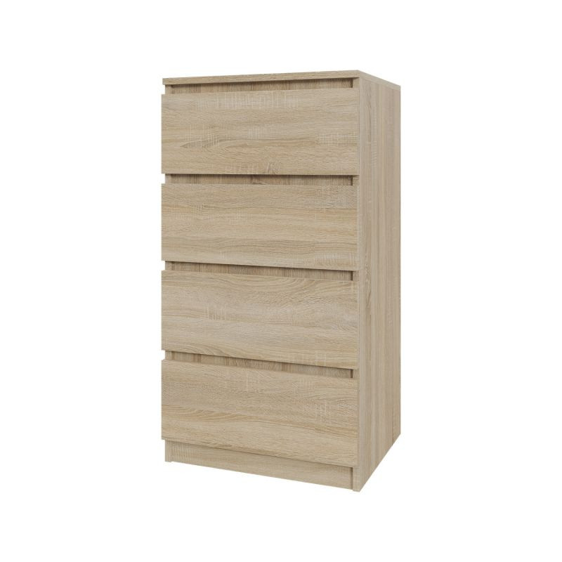Ten czteroszufladowy mebel w salonie świetnie sprawdzi się jako praktyczne miejsce na książki, gazety i ważne dokumenty. W holu i przedpokoju czy korytarzu kompaktową komodę o szer. 50 cm wykorzystasz jako szafkę na klucze, buty i inne drobiazgi. Wykonanie szafki ze sprawdzonych komponentów łączy estetykę z praktycznym zastosowaniem i solidnością. Dzięki temu komoda sprosta oczekiwaniom najbardziej wymagających klientów.