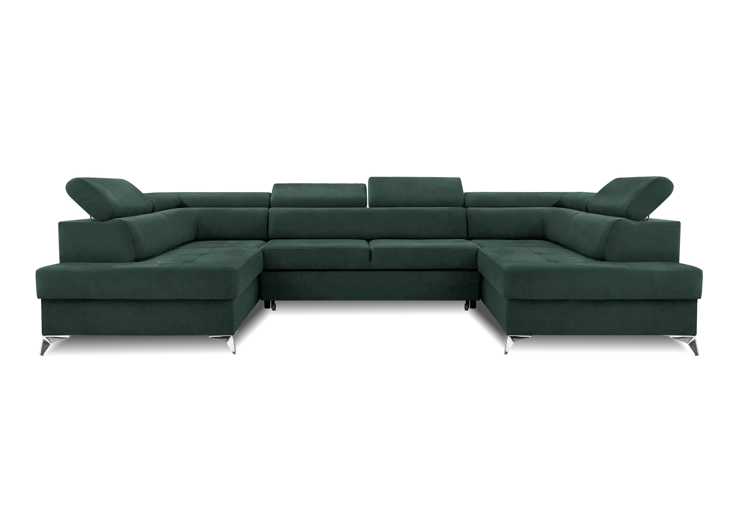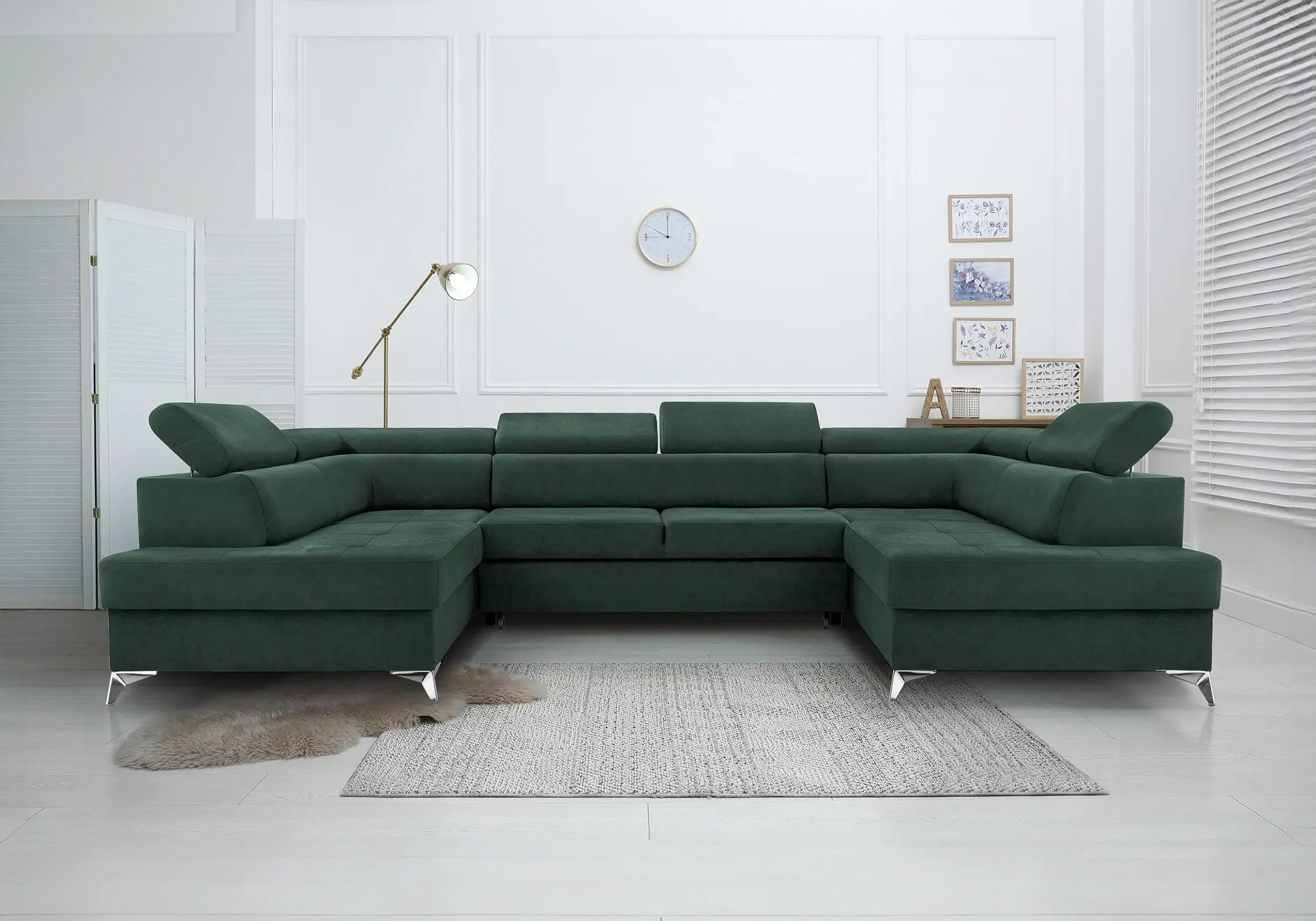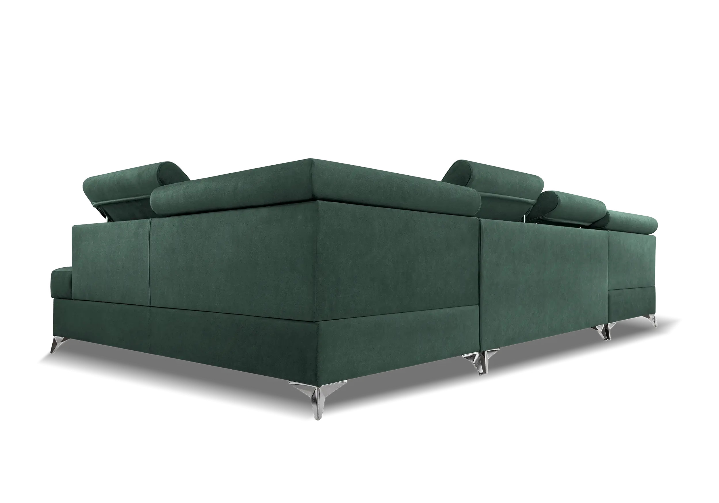 Narożnik z funkcją spania Barcelona dostępny jest w ciekawej kolorystyce a nowoczesne srebrne nóżki, nadają nowoczesnego stylu. Regulowane zagłówki. Boczek narożnika z regulowanym podłokietnikiem . Narożnik został wyposażony w funkcję spania oraz dwa pojemniki na pościel.