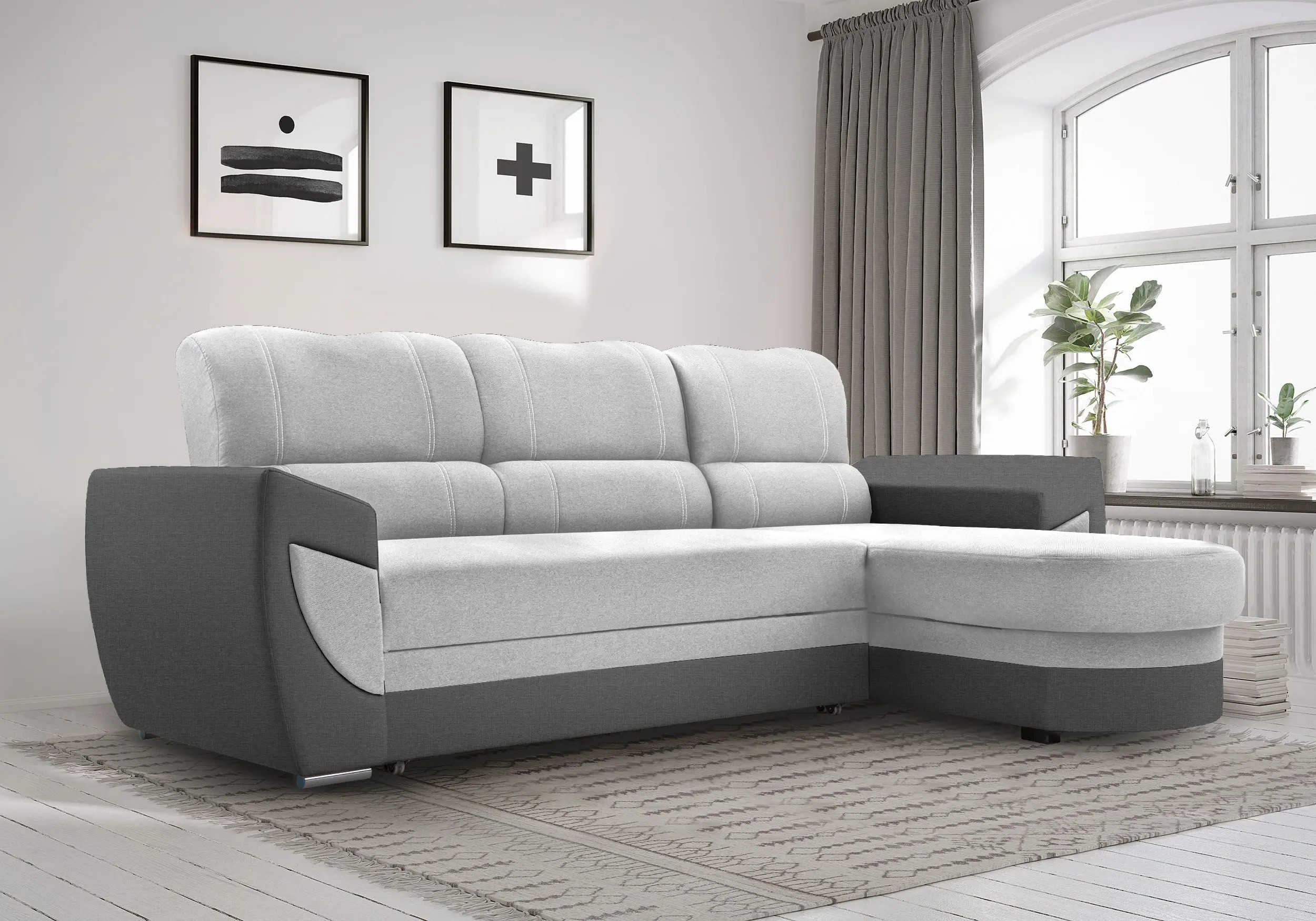 Kryssy to narożnik do salonu o niedużych rozmiarach z funkcją spania, zapewnia wygodę w trakcie siedzenia oraz komfortowy sen. Ciekawym akcentem narożnika są podłokietniki ułożone pod kątem co sprawia, że model nabiera nowoczesnego charakteru. Wybierając narożnik Trendi z pewnością docenisz komfort użytkowania. Posiada powierzchnię spania 196x142cm oraz pojemnik na pościel.