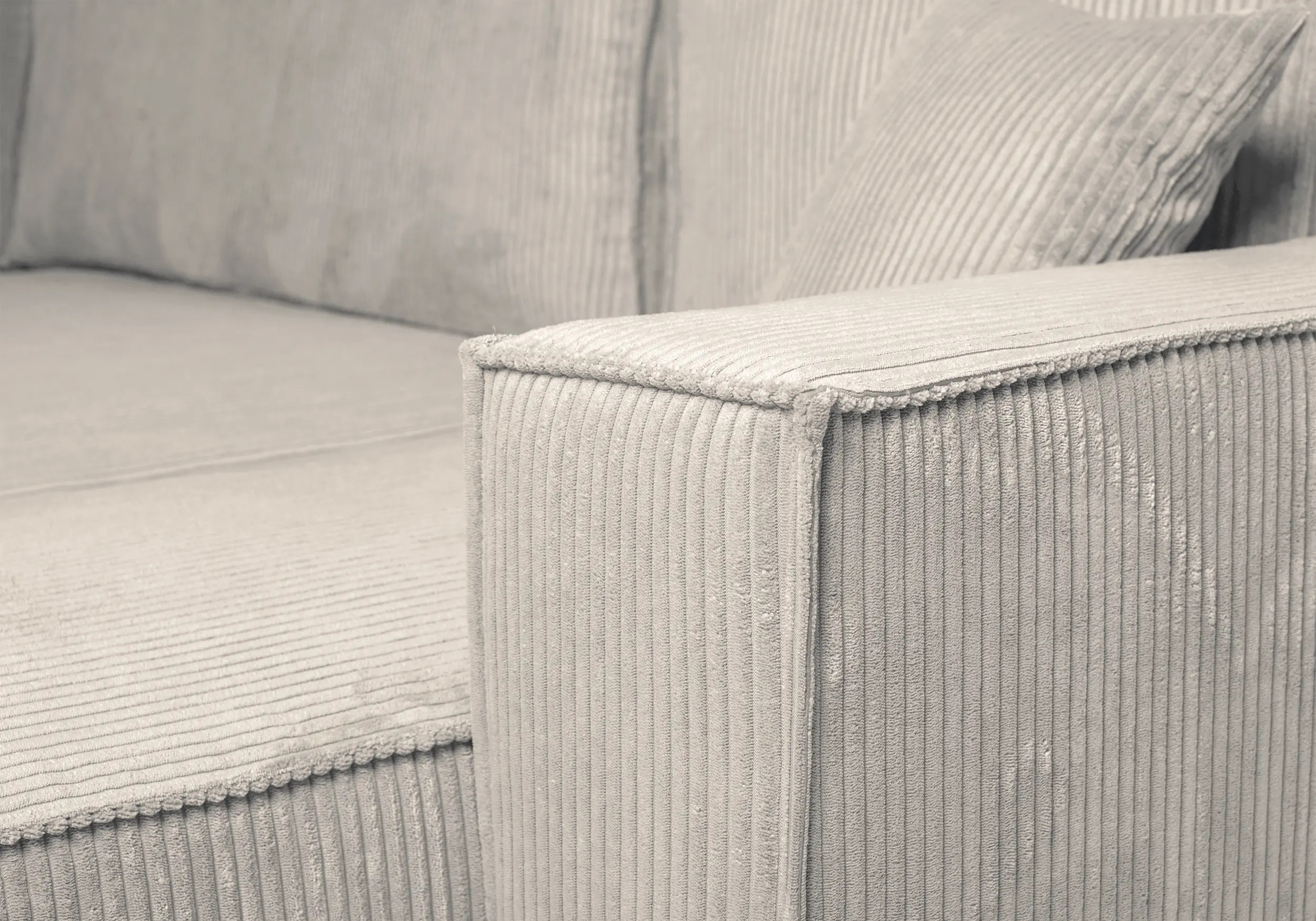Konstrukcja narożnika wykonana jest z wysokiej jakości drewna i płyty meblowej, co gwarantuje mu solidność i trwałość na lata. Dodatkowo, wyściełane poduchy siedziska i oparcia są wypełnione pianką wysokoelastyczną, która zapewnia optymalne wsparcie dla ciała. Obicie narożnika wykonane jest z wytrzymałego, łatwego w czyszczeniu materiału, co ułatwia utrzymanie mebla w idealnym stanie. Tkanina jest miękka, trójwymiarowa, idealna na obszerne sofy. Sztruks obiciowy POSO to wytrzymałość, trwałość i odporność na zużycie, gwarantujący jakość na długie lata. Materiał POSO idealnie wkomponuje się zarówno w styl klasyczny, retro jak i nowoczesny a miła ciepła w dotyku struktura tkaniny sztruksowej nada ciepłą i przytulną atmosferę do wnętrza, zachęcając do wypoczynku oraz relaksu.