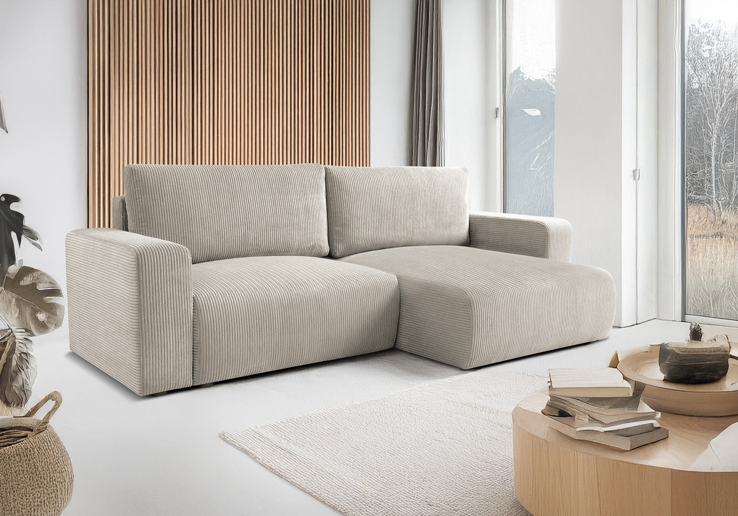 Narożnik Hent to doskonałe połączenie stylu, komfortu i funkcjonalności, idealnie wpisujące się w estetykę nowoczesnych wnętrz z nutą boho. Jego miękka, sztruksowa tkanina i subtelne, naturalne odcienie sprawiają, że ten mebel stanie się sercem każdego salonu, tworząc wyjątkową strefę relaksu.