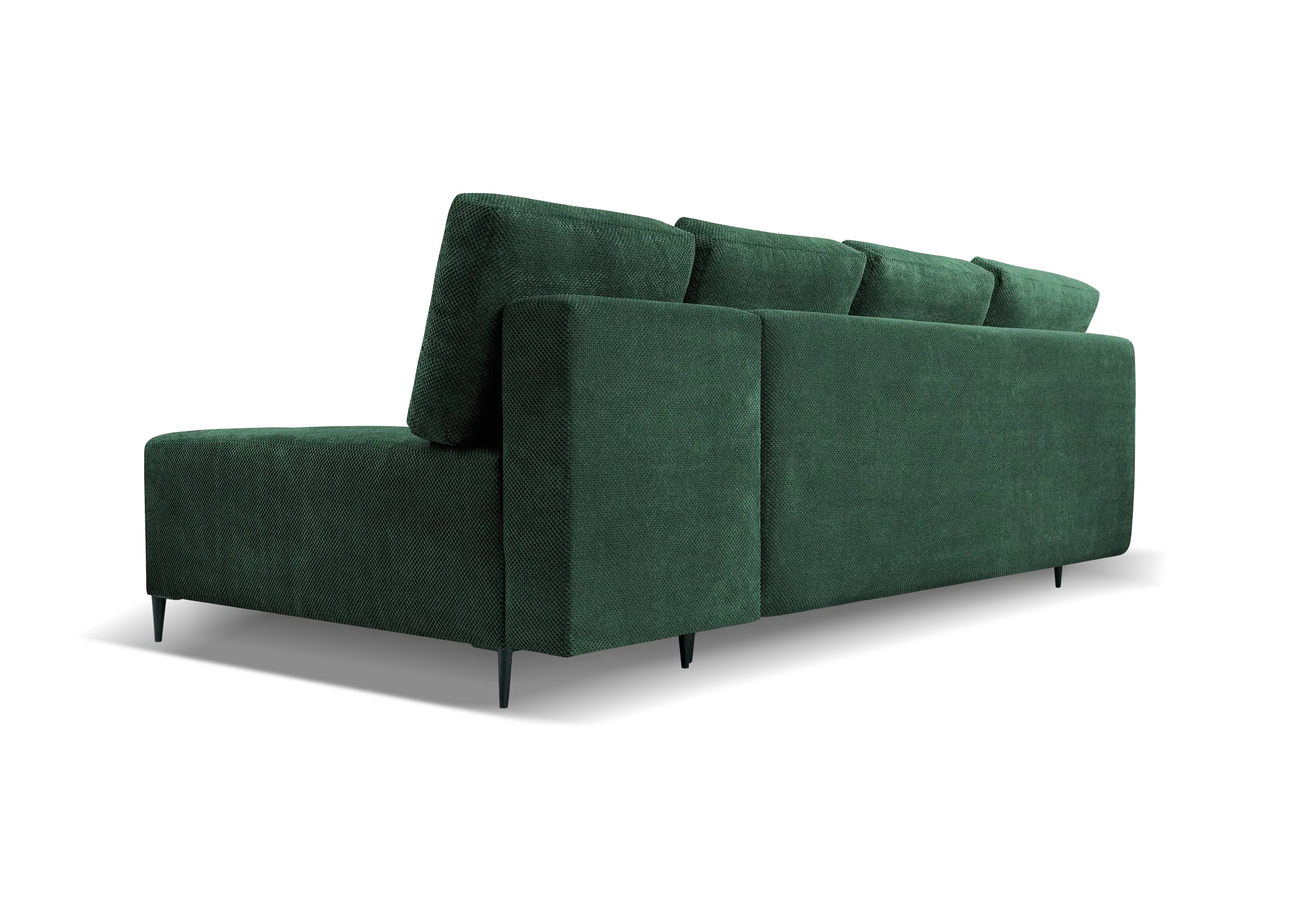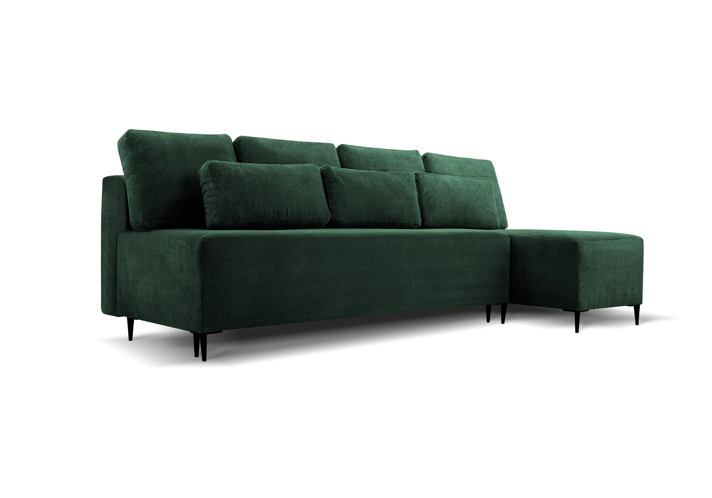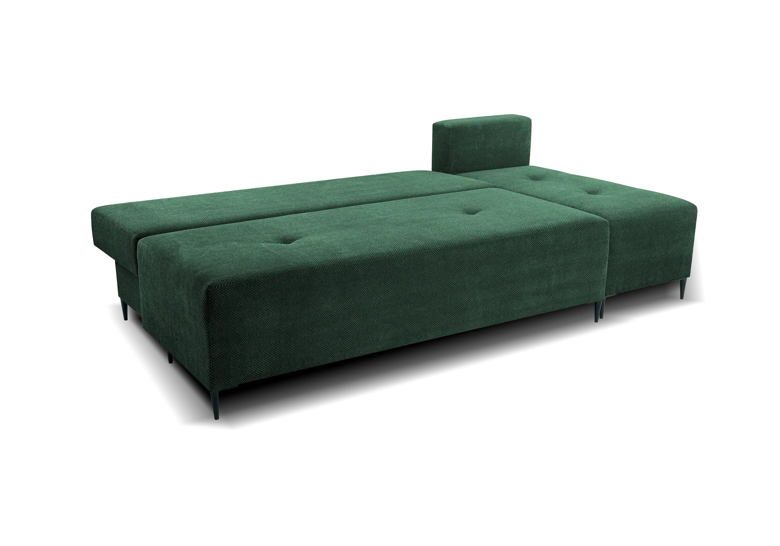 Narożnik z funkcją spania Keno dostępny jest w ciekawej kolorystyce, a nowoczesne czarne nóżki, nadają nowoczesnego stylu. Wyposażony w 7 poduszek. Narożnik został wyposażony w funkcję spania 120x251cm oraz pojemnik na pościel.