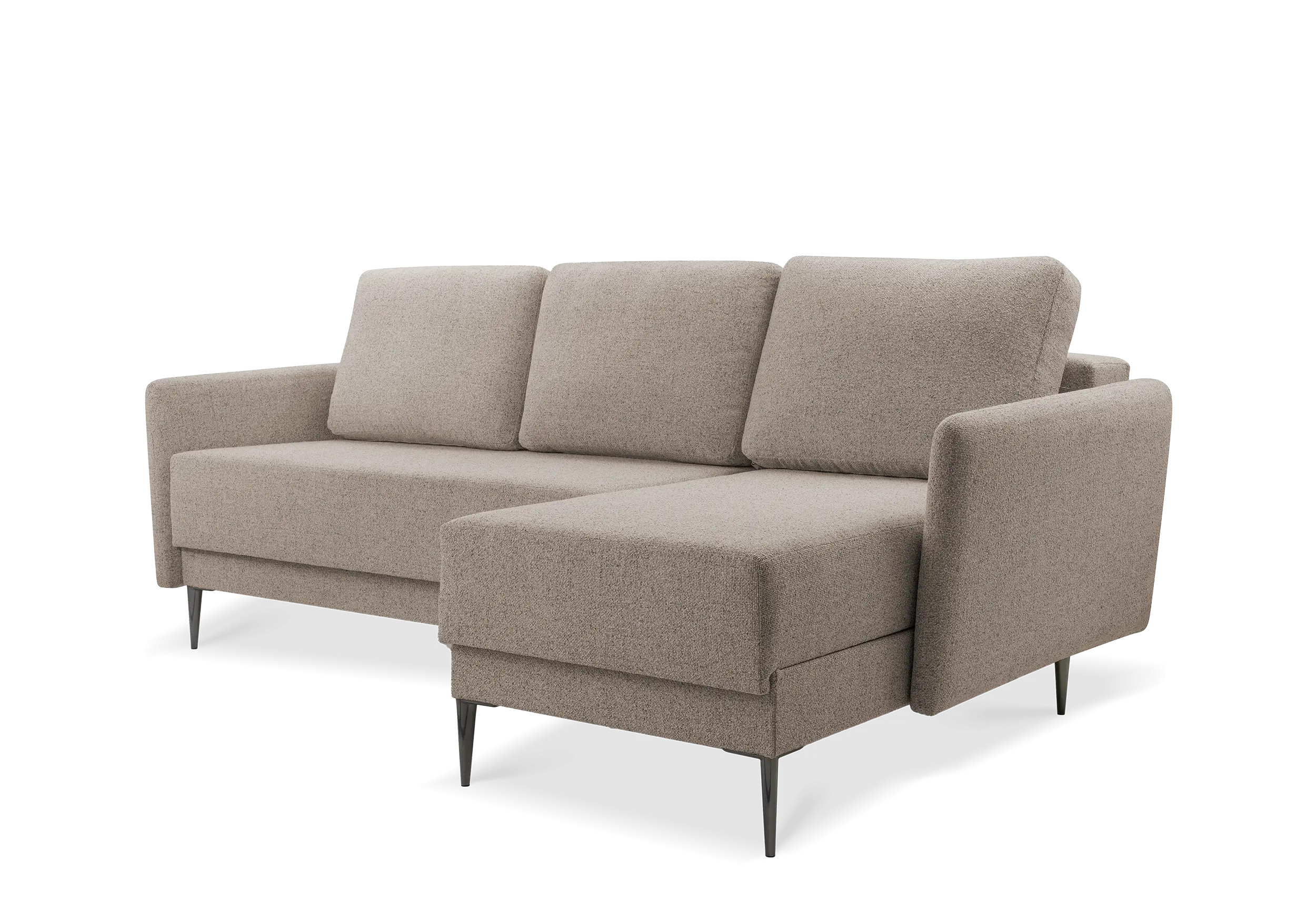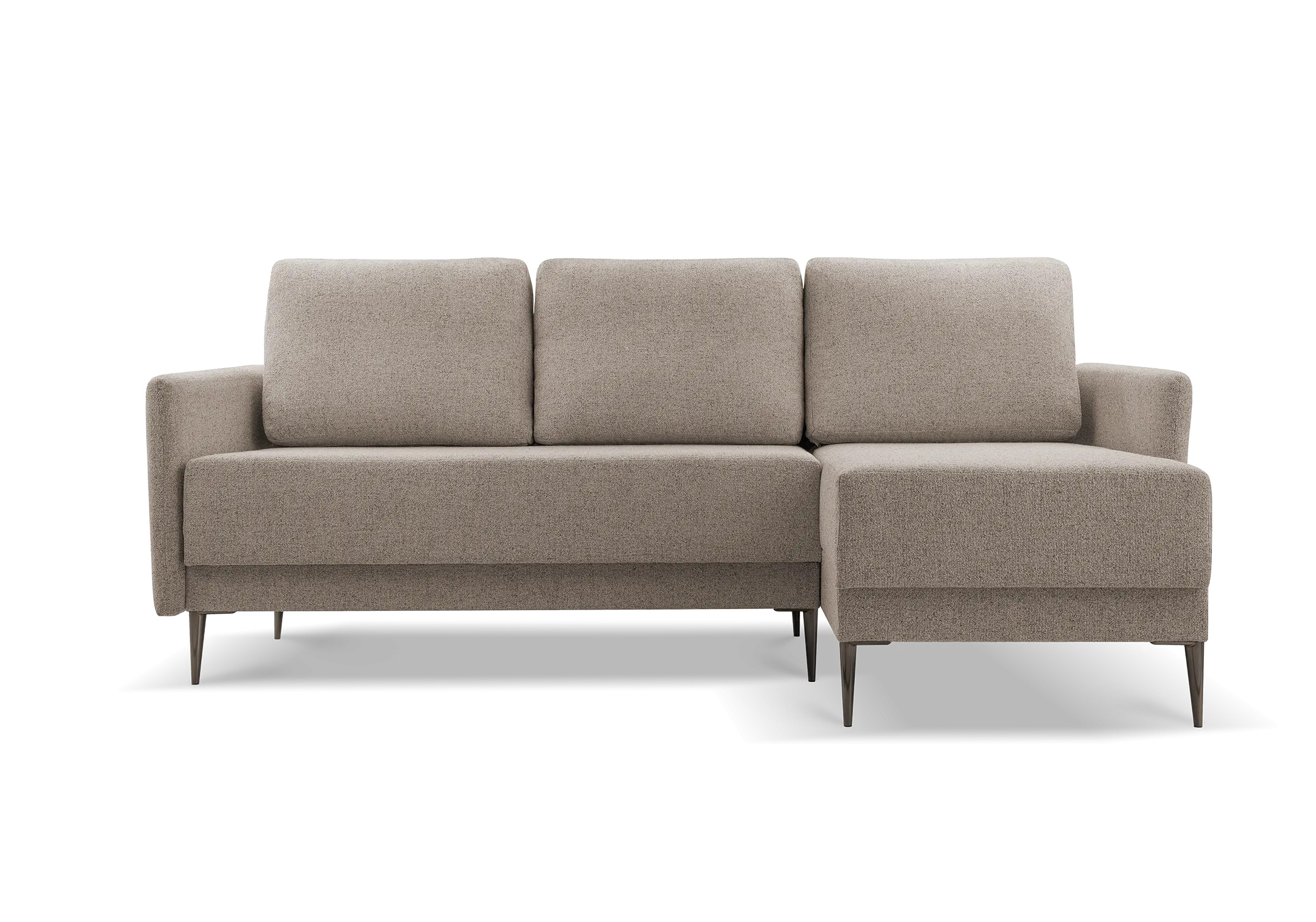 Narożnik z funkcją spania Cord dostępny jest w ciekawej kolorystyce z dekoracyjnymi poduchami w sztruksowanej tkaninie typu Velvet. Narożnik został wyposażony w funkcję spania 125x210cm oraz dwa pojemniki na pościel. Po rozłożeniu część przeznaczona do spanie obita w kolorze narożnika.