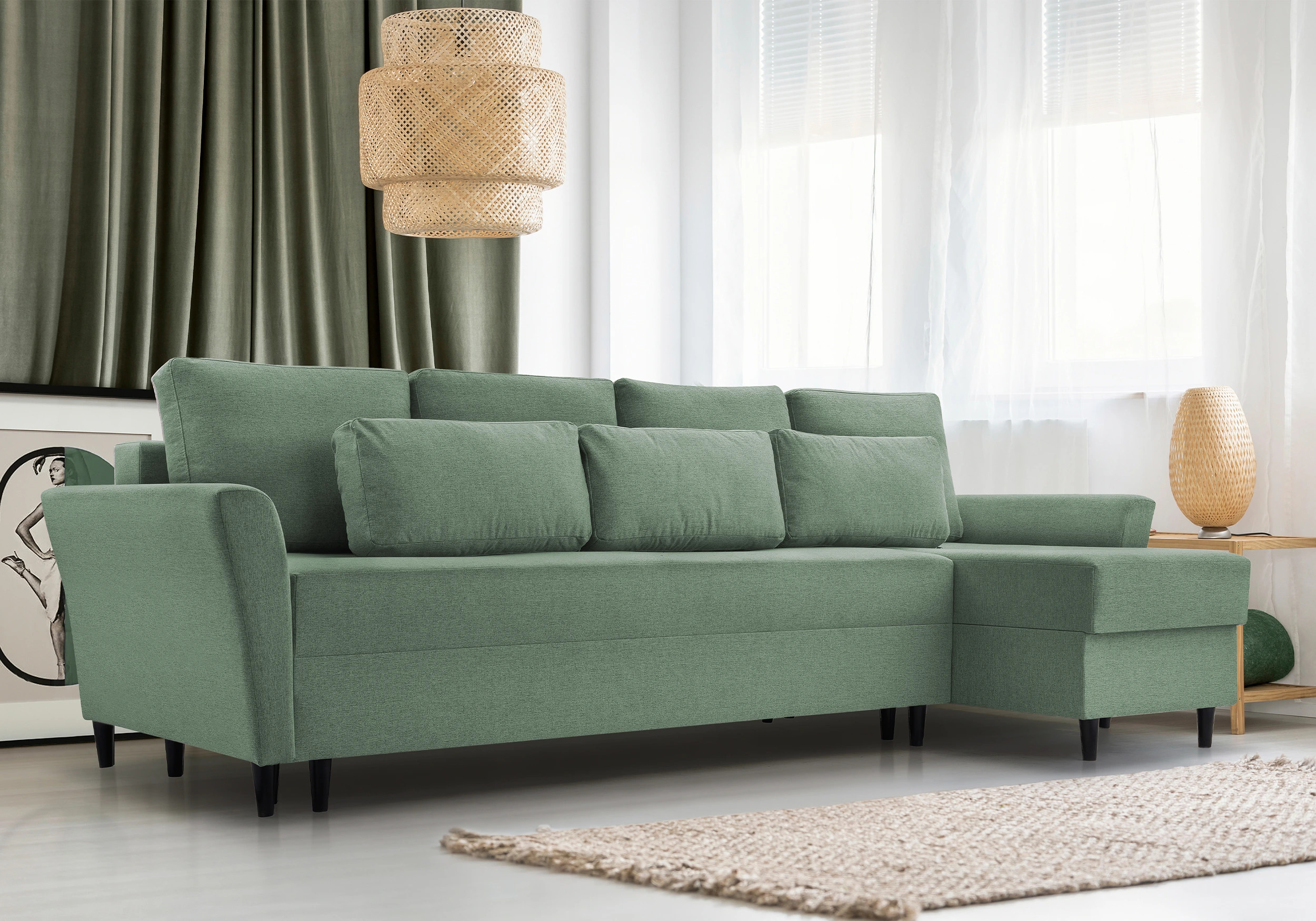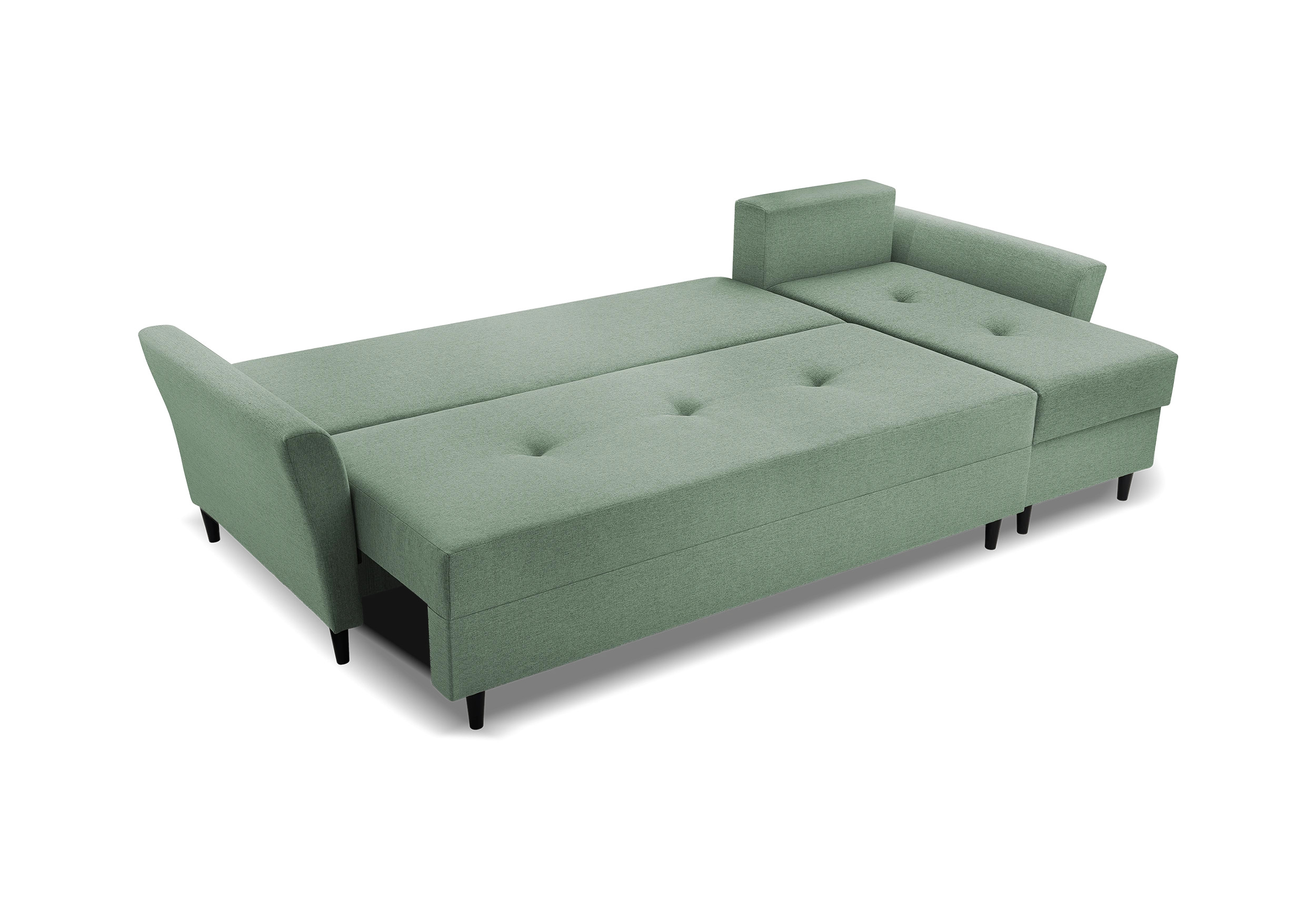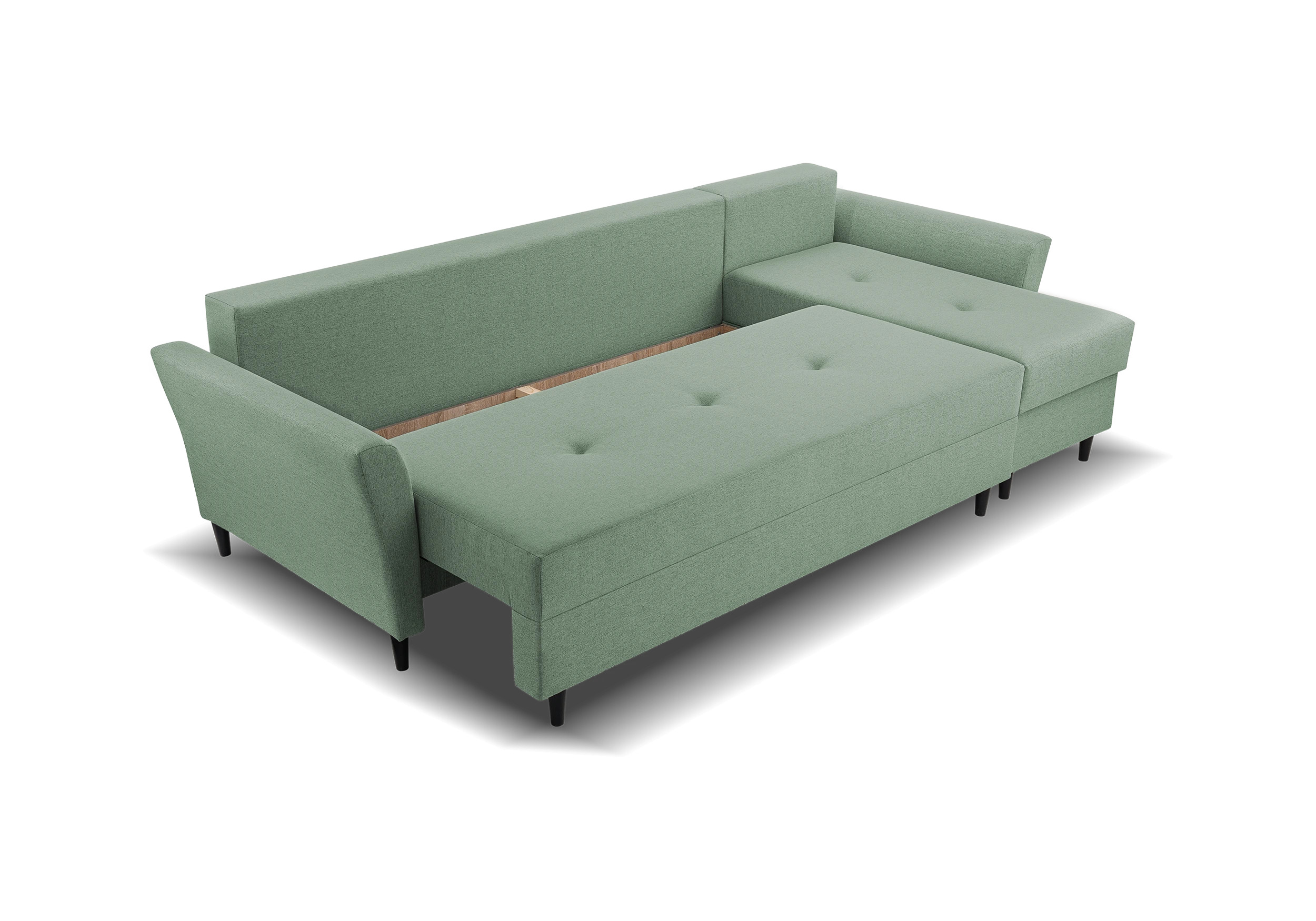 Narożnik z funkcją spania Coline Move dostępny jest w ciekawej kolorystyce a nowoczesne czarne nóżki, nadają nowoczesnego stylu. Narożnik został wyposażony w funkcję spania 124x251cm oraz pojemnik na pościel. Po rozłożeniu część przeznaczona do spanie obita w kolorze narożnika.