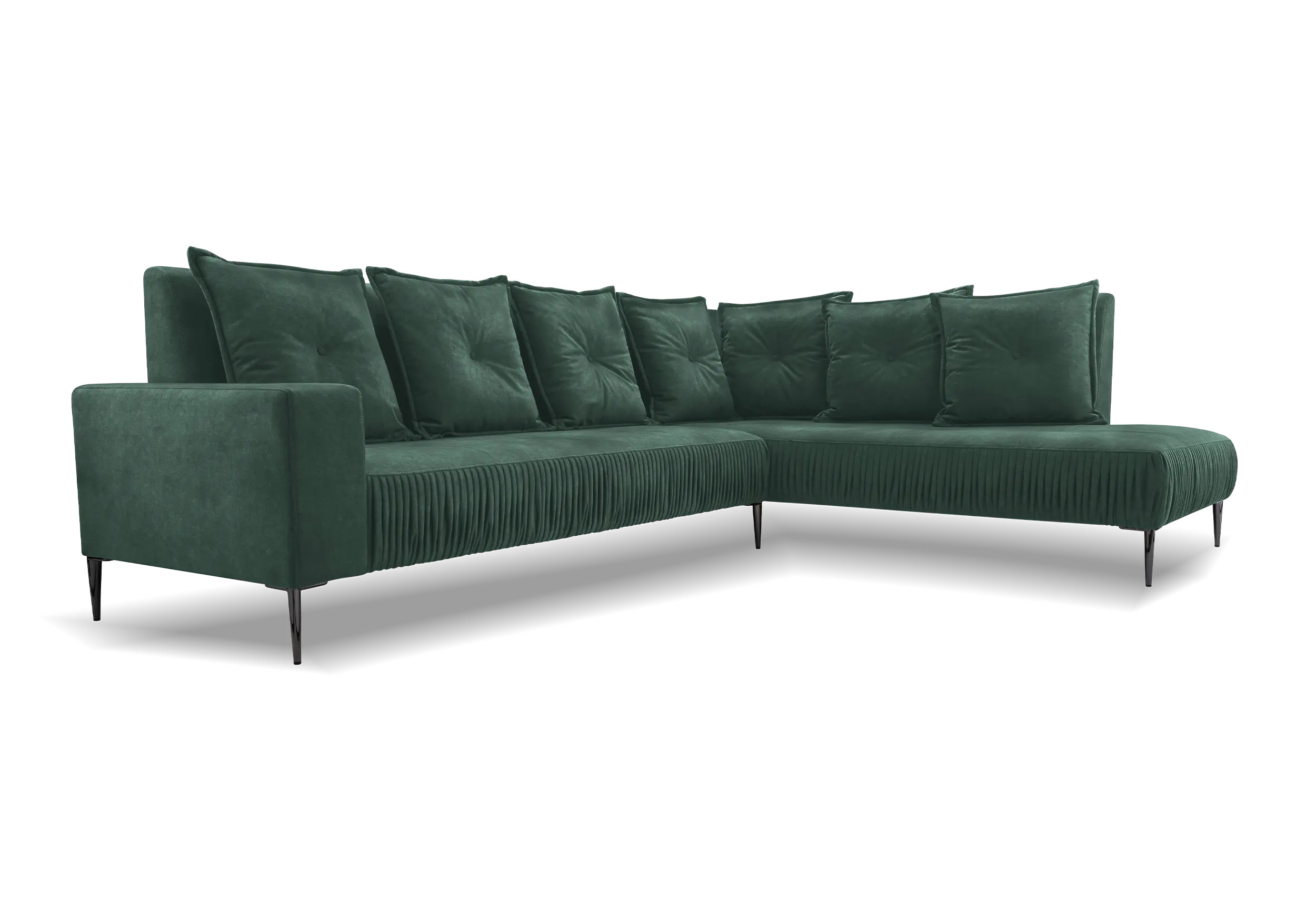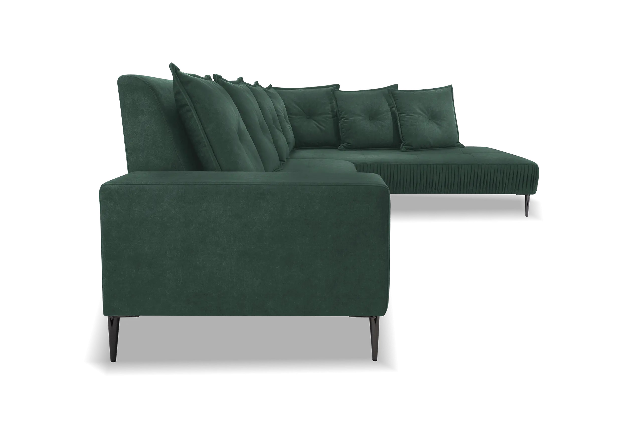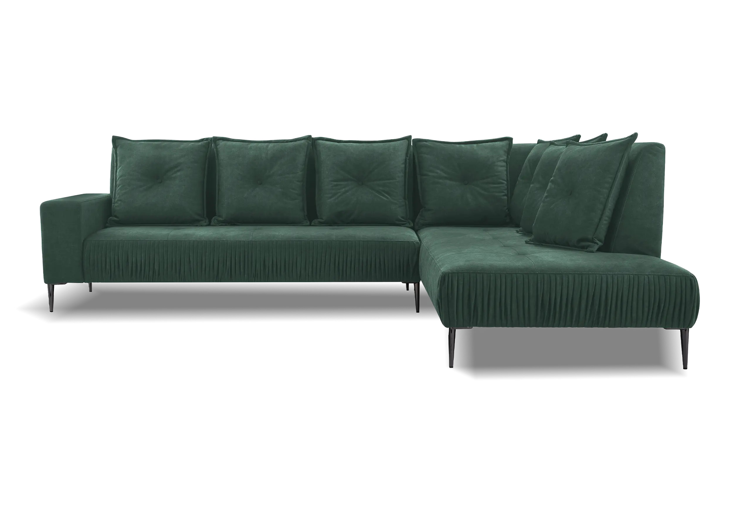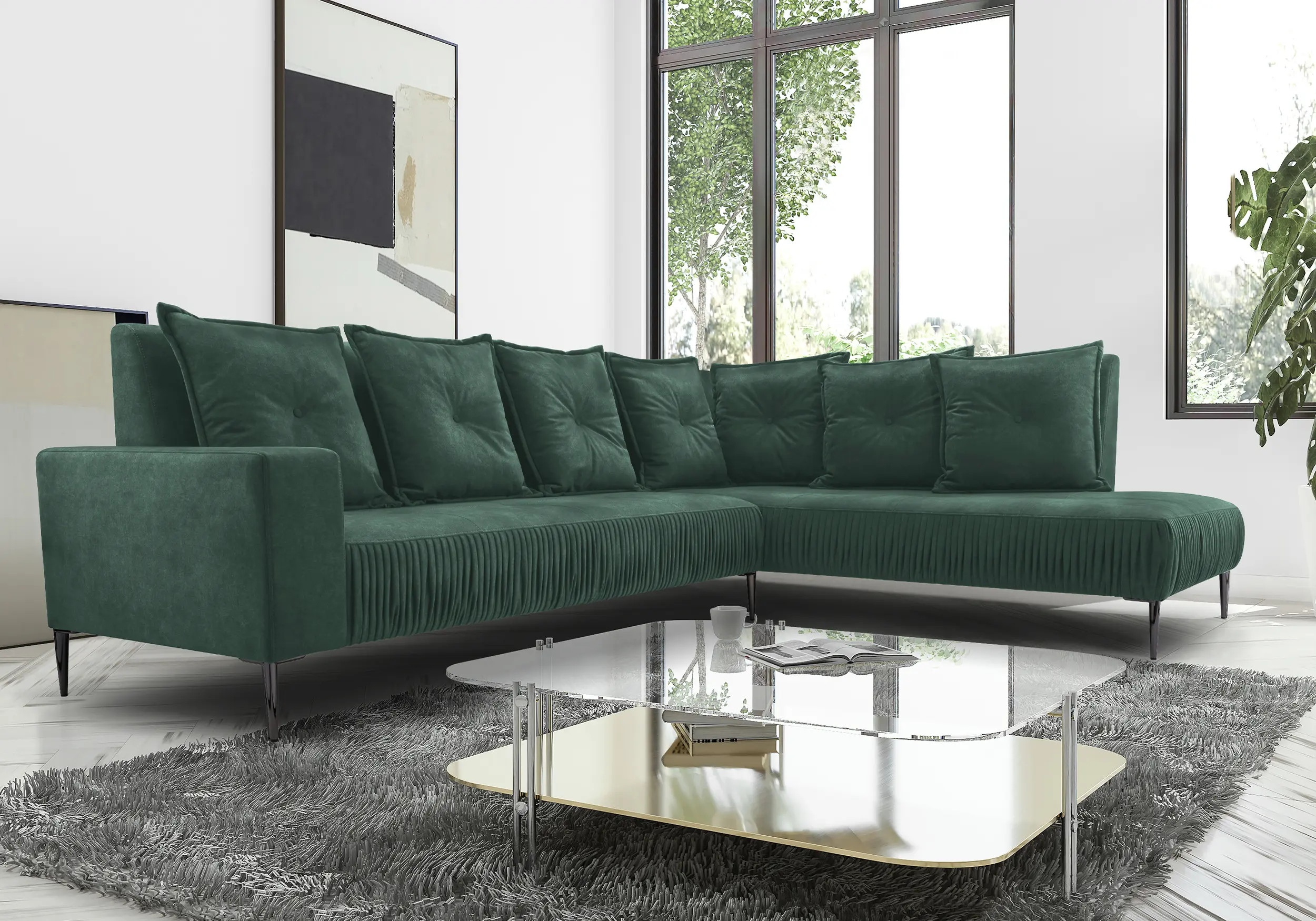 Narożnik Kendy dostępny jest w ciekawej kolorystyce, nowoczesne czarne nóżki typu szpilki, nadają nowoczesnego stylu. Narożnik bez funkcji spania to stylowy mebel, który świetnie nadaje się do aranżacji salonu, pokoju dziennego lub przestrzeni biurowej. Dzięki swojemu nowoczesnemu wyglądowi i różnorodności kolorów, narożnik Kendy spania stanowi zarówno praktyczny element wyposażenia, jak i atrakcyjny dodatek do wystroju wnętrza.