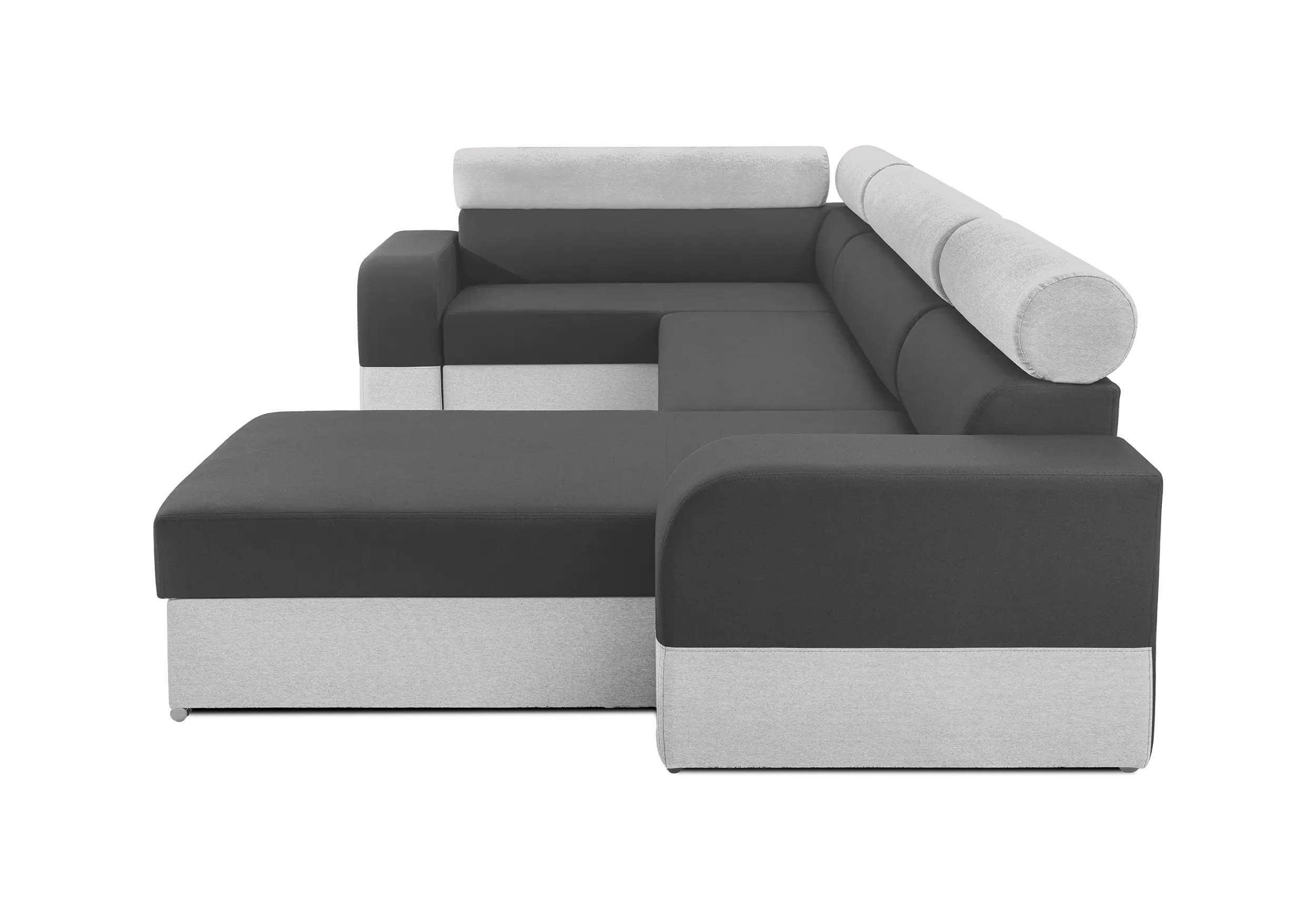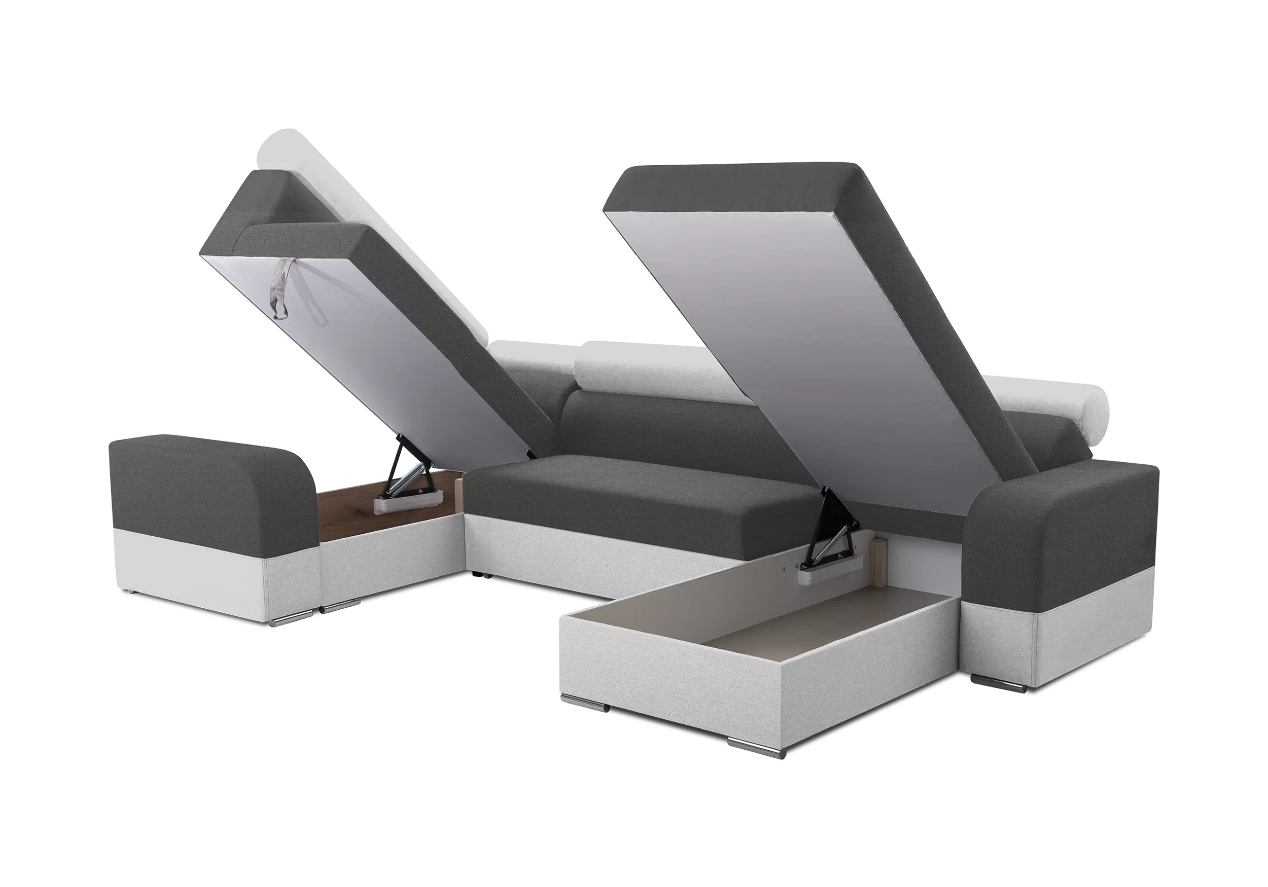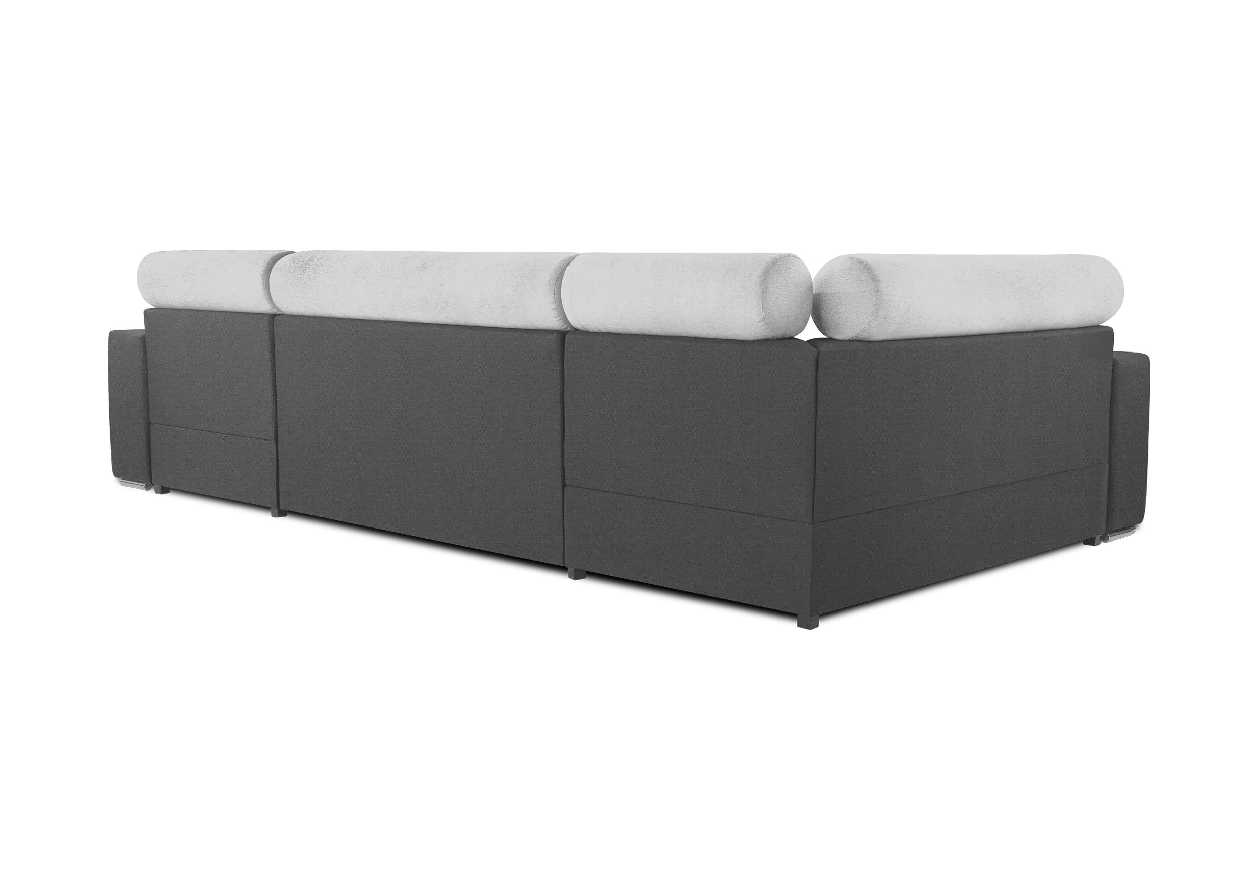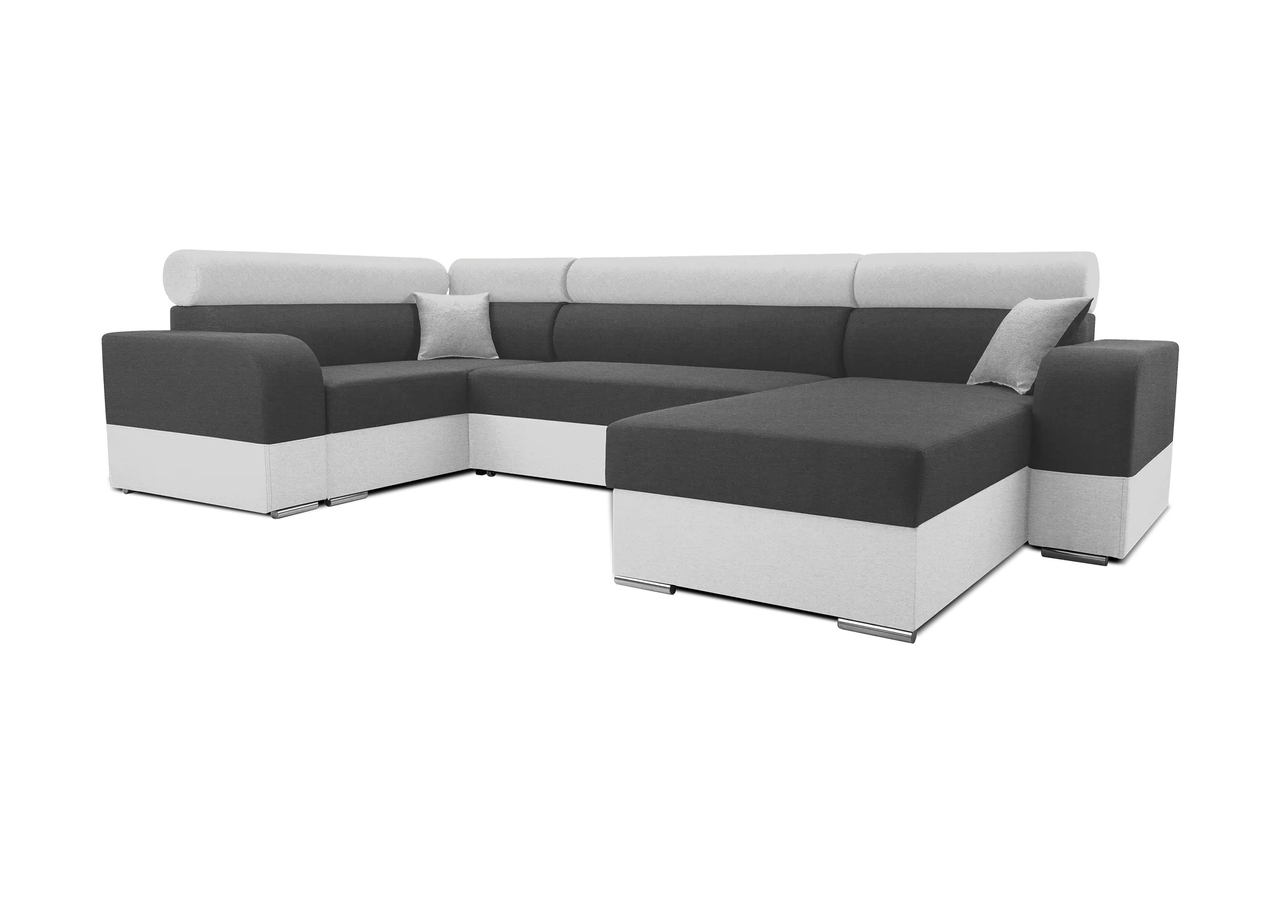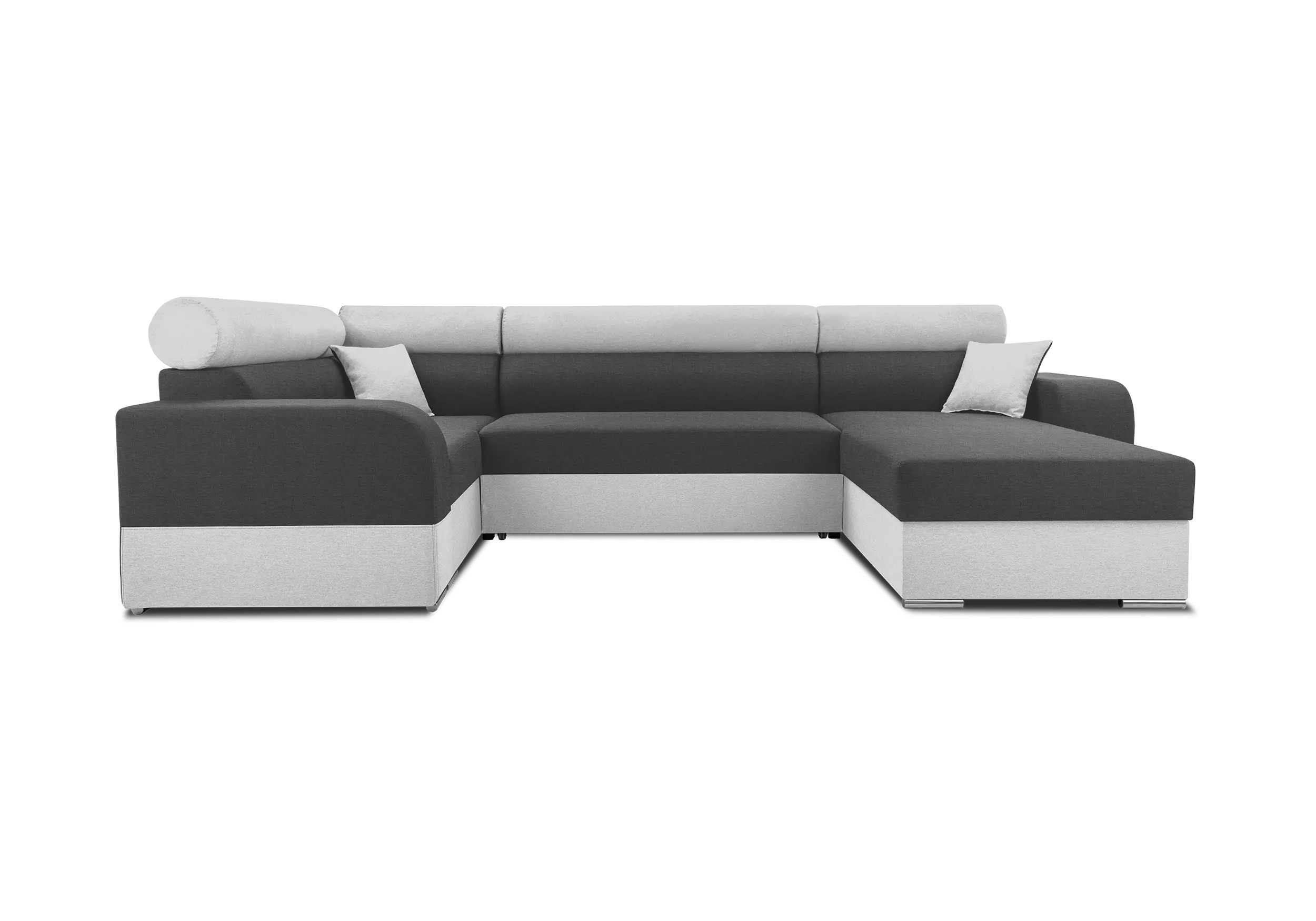 Narożnik Modern idealnie nadaje się zarówno do klasycznych jak i nowocześnie urządzonych wnętrz. Został stworzony na kształt litery „U”, dzięki czemu powierzchnia użytkowa jest naprawdę duż. Zagłówki i ozdobne małe poduszki dbają o maksymalny komfort użytkowania. Narożnik jest rozkładany, posiada powierzchnię spania 278x132cm oraz 2 pojemniki na pościel.