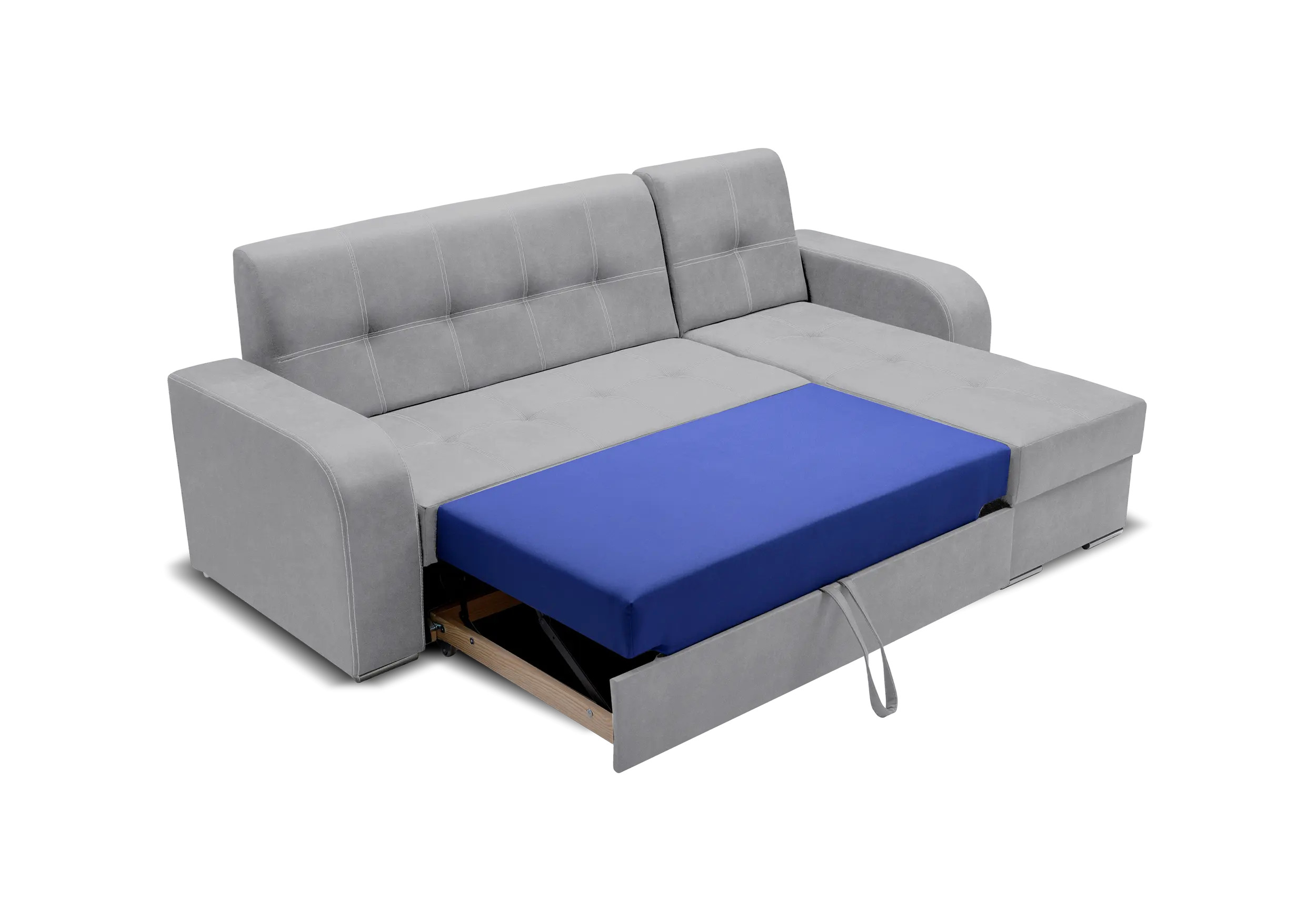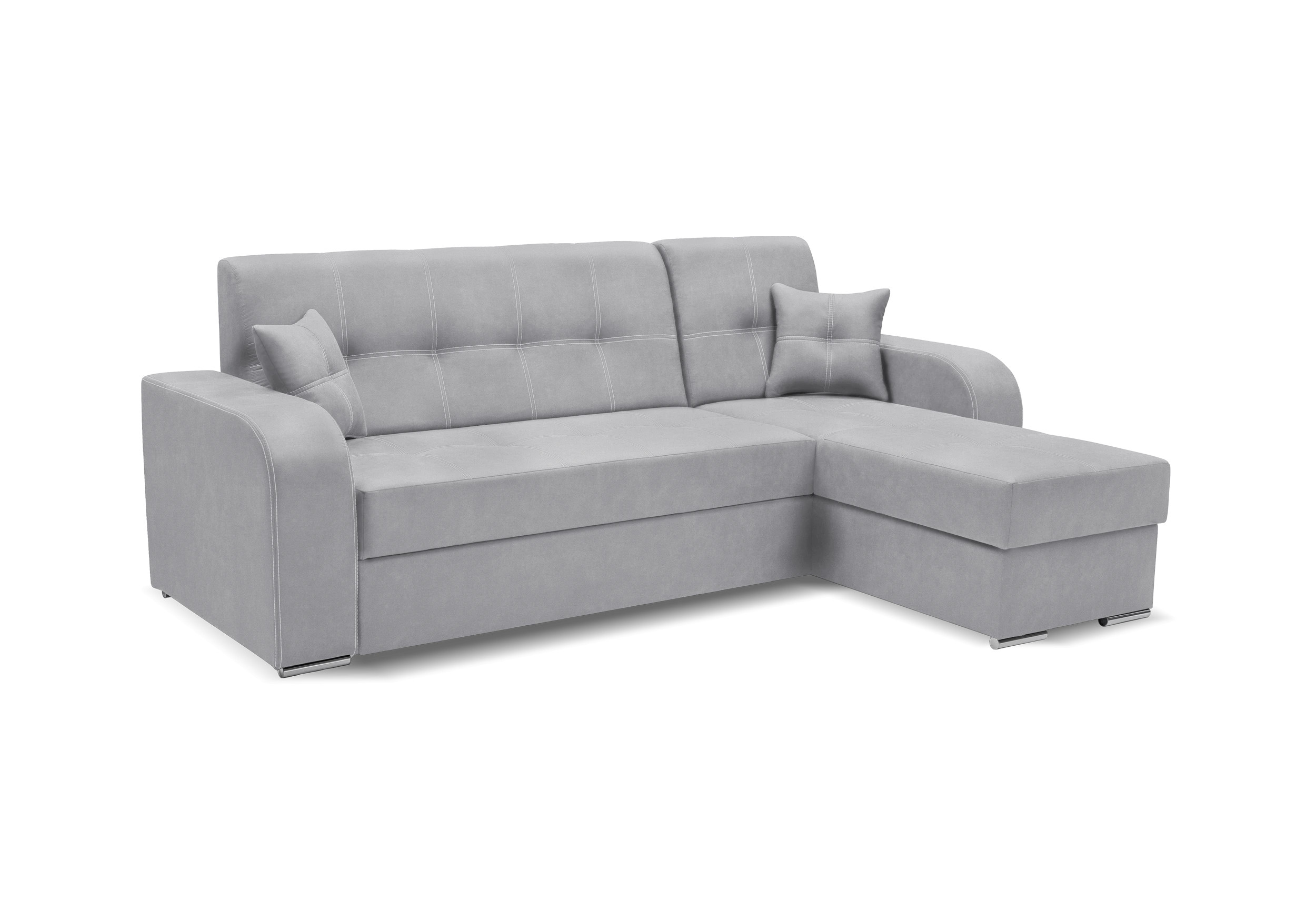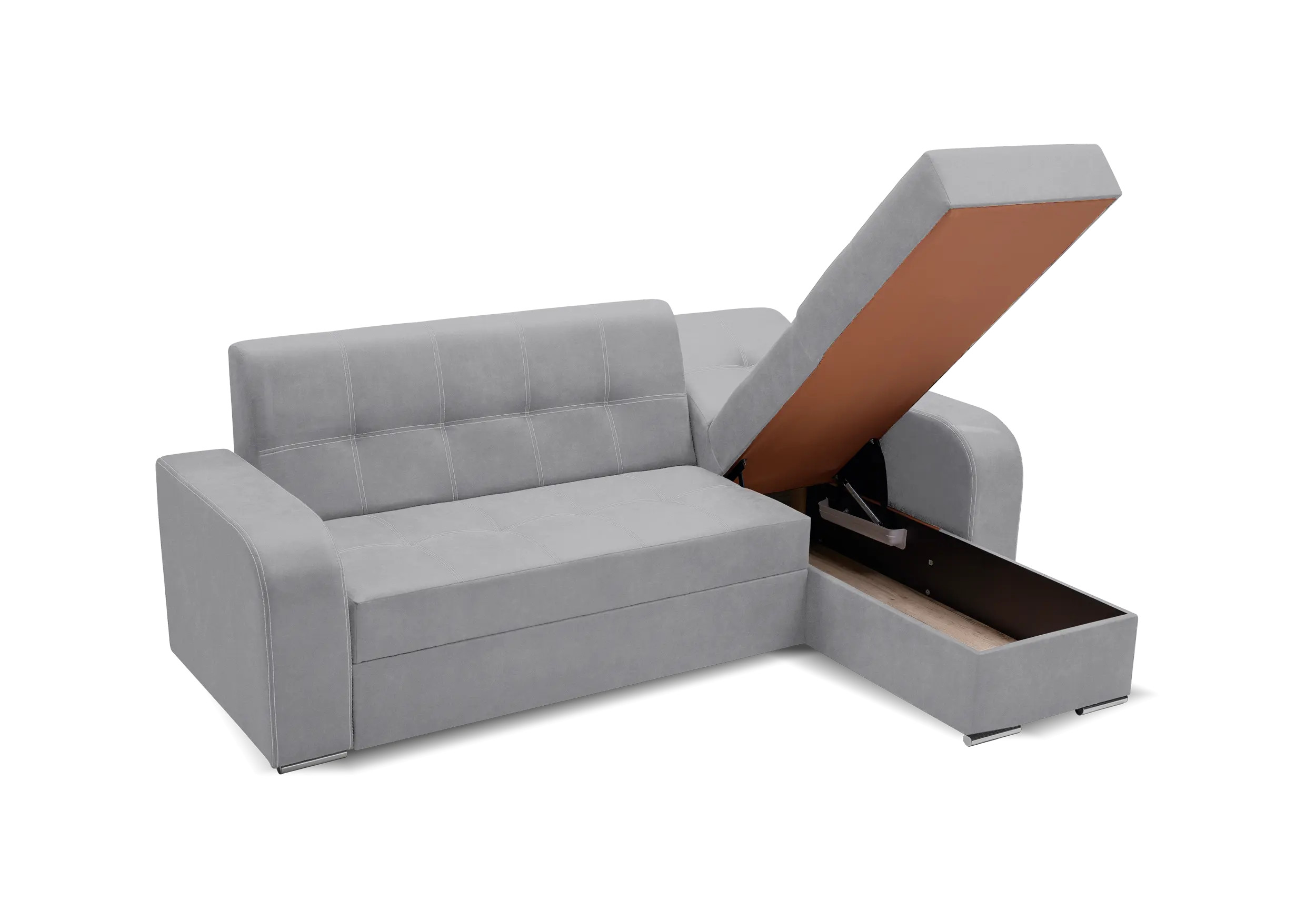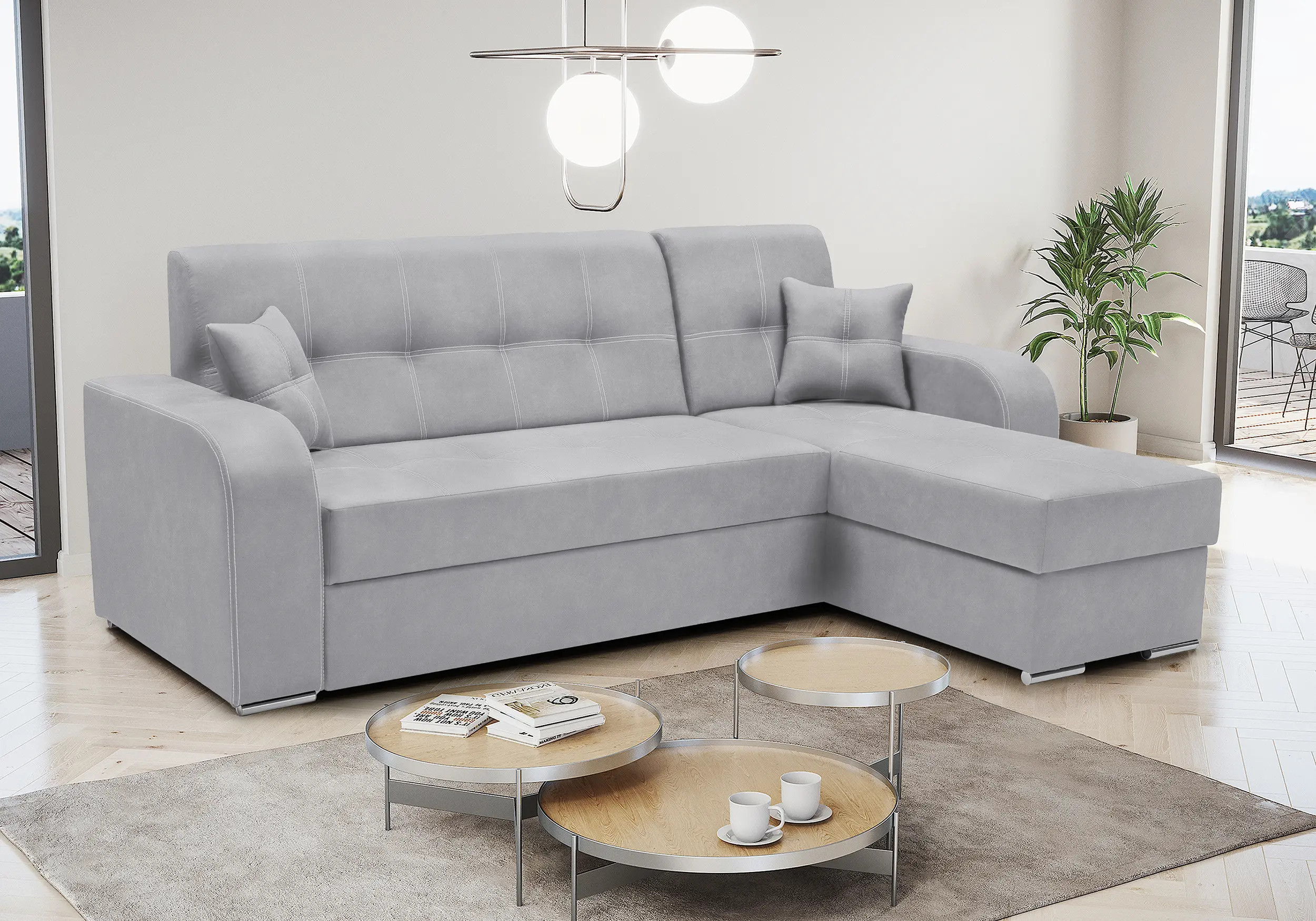 Narożnik Alton to klasyczny model, który zapewnia komfort użytkowania zarówno w trakcie siedzenia, jak i spania. Do narożnika dołączone są małe dekoracyjne poduszki a opacie zdobione jest przeszyciami i modnymi pikowaniami. Dodatkowo narożnik został wyposażony w funkcję spania 190x135cm oraz pojemnik na pościel.