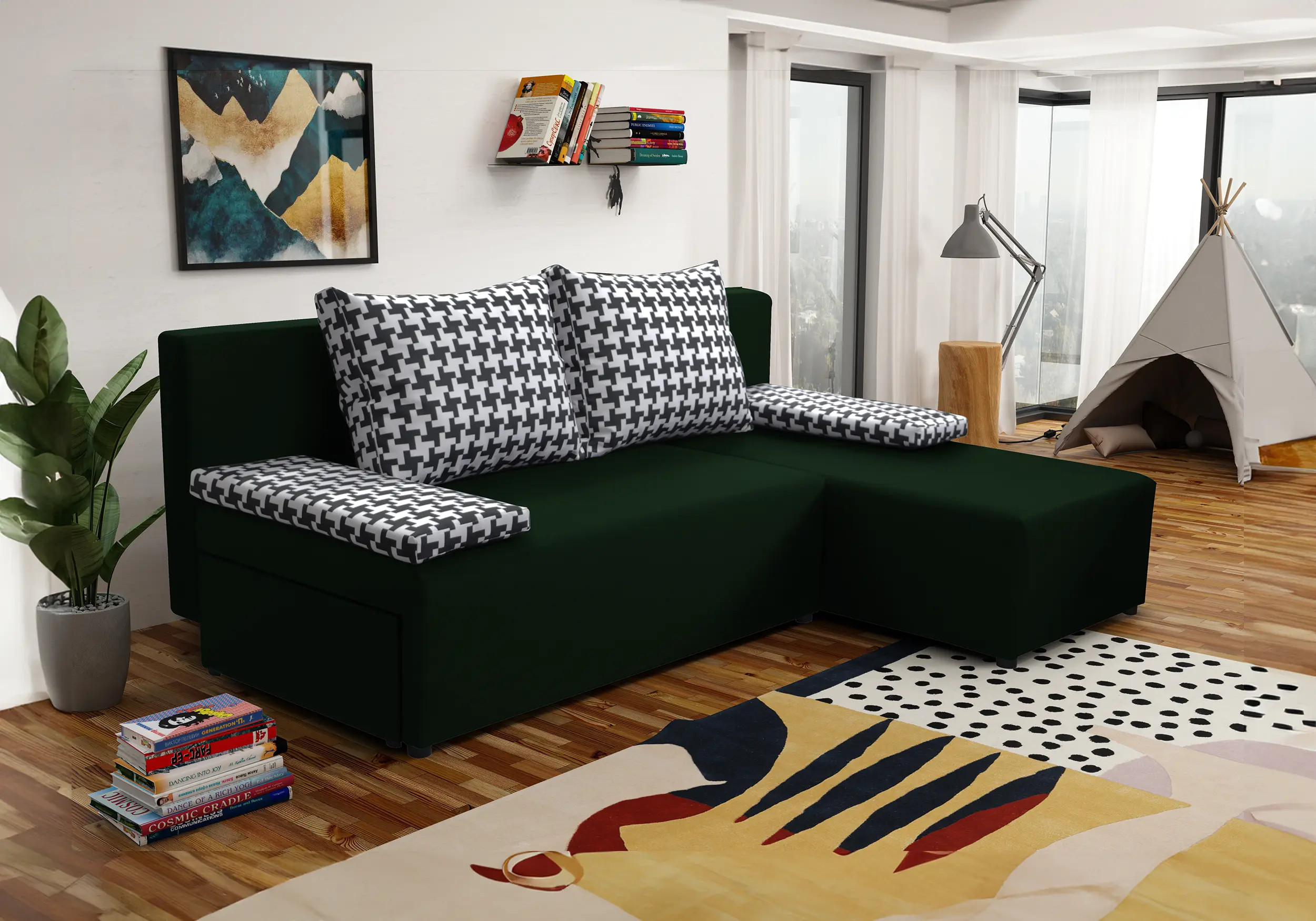 Narożnik Weston charakteryzuje się nowym design oraz nowoczesnymi i trwałymi tkaninami. Jest całkowicie uniwersalny, zgodnie z instrukcją klient musi sobie przykręcić szyny. W całości wykonany jest na piance T30. Siedzisko do spania jest rozsuwane. Narożnik jest rozkładany, posiada powierzchnię spania 200x135cm oraz pojemnik na pościel.