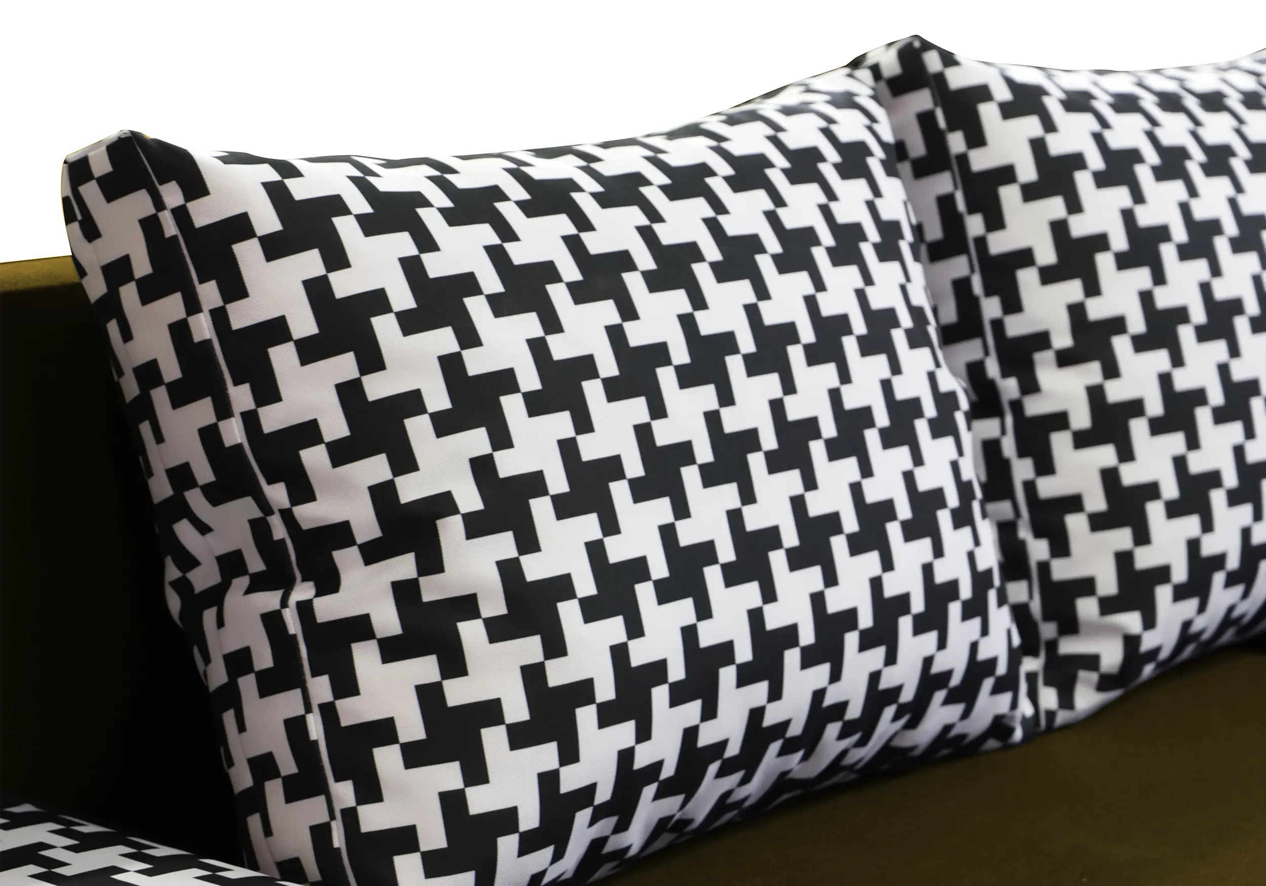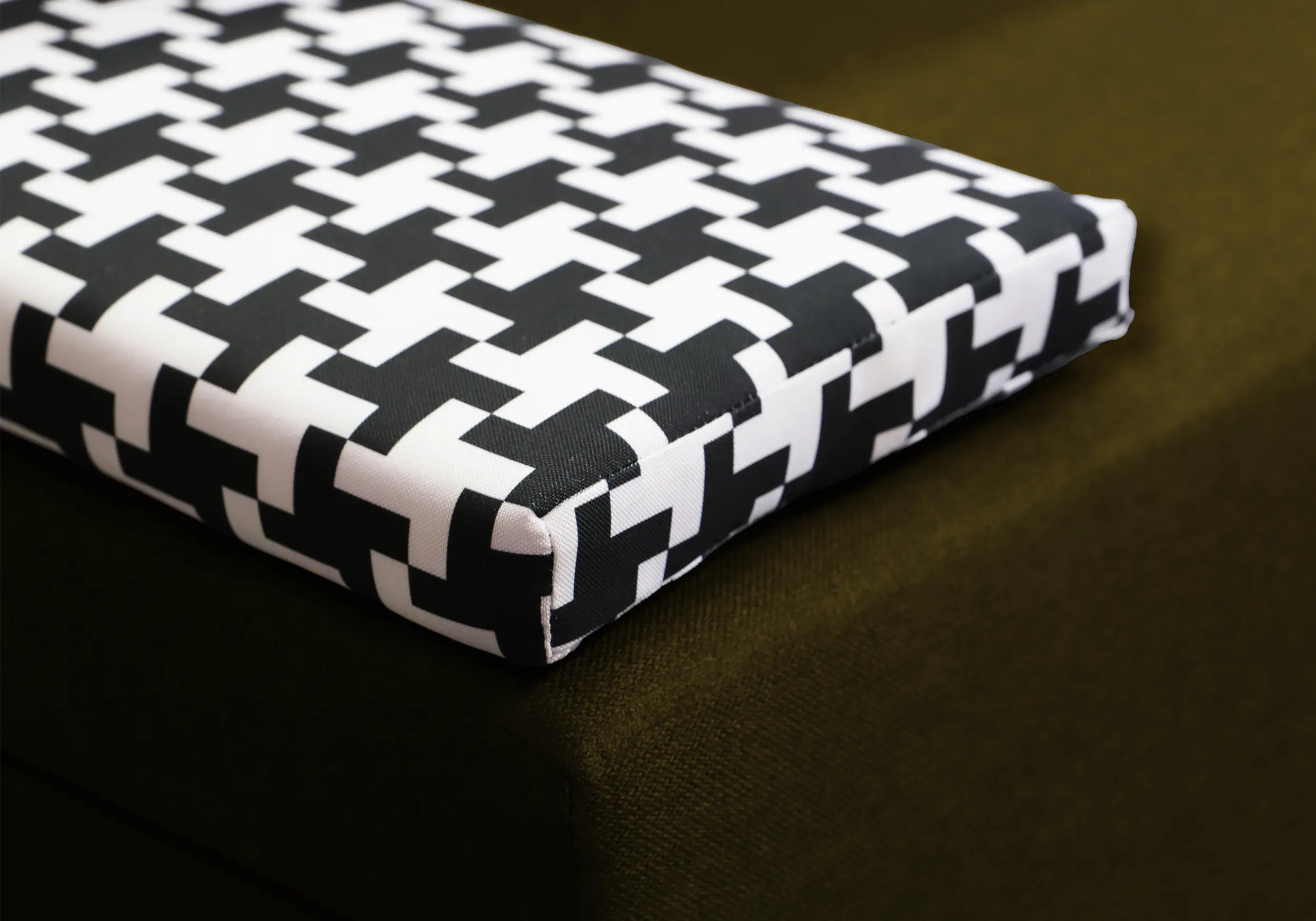Tył mebla obity tkaniną w kolorze tapicerki pozwala na swobodne umieszczenie go w przestrzeni, bez konieczności przylegania do ściany.