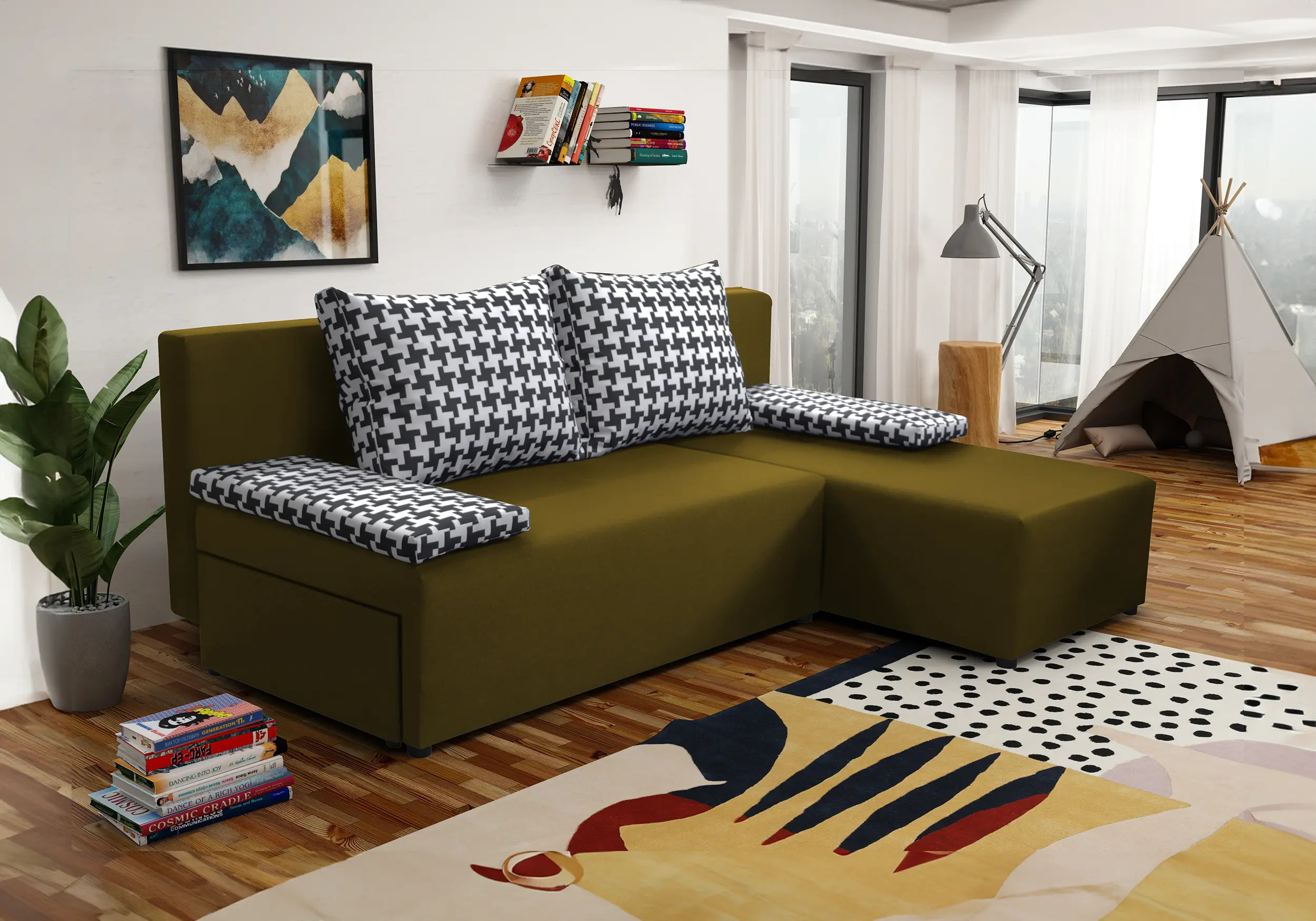 Narożnik Weston charakteryzuje się nowym design oraz nowoczesnymi i trwałymi tkaninami. Jest całkowicie uniwersalny, zgodnie z instrukcją klient musi sobie przykręcić szyny. W całości wykonany jest na piance T30. Siedzisko do spania jest rozsuwane. Narożnik jest rozkładany, posiada powierzchnię spania 200x135cm oraz pojemnik na pościel.