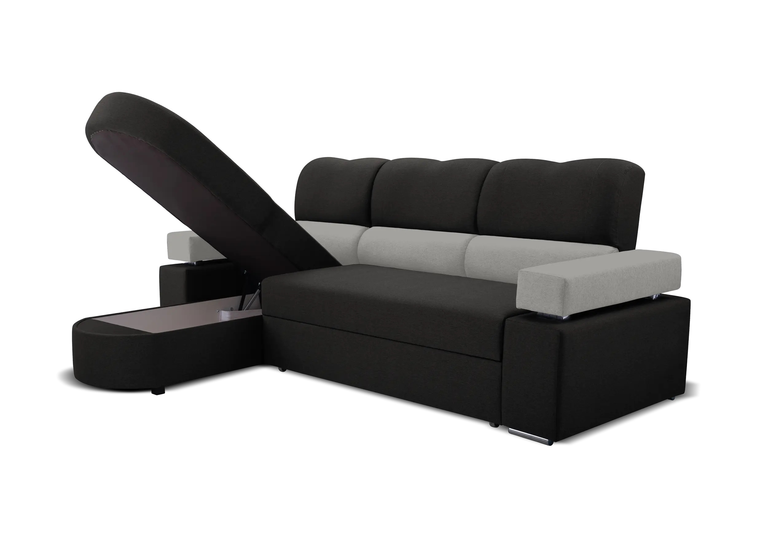 Narożnik Modo został skonstruowany na wzór litery L co sprawia, że posiada dużo miejsca do siedzenia oraz wypoczynku w pozycji półleżącej na wygodnym szezlongu. Narożnik posiada powierzchnię spania 200x128cm oraz pojemnik na pościel.