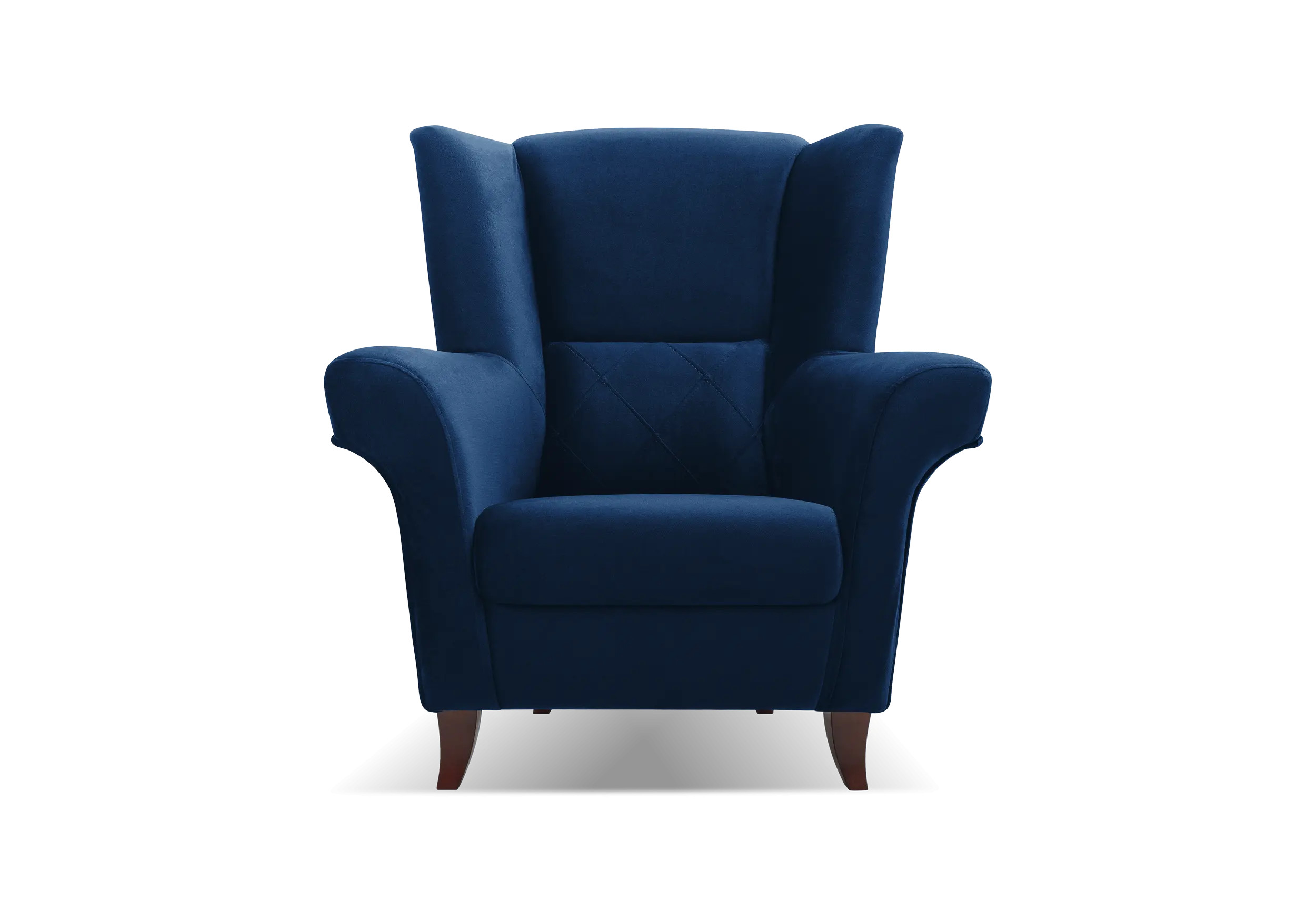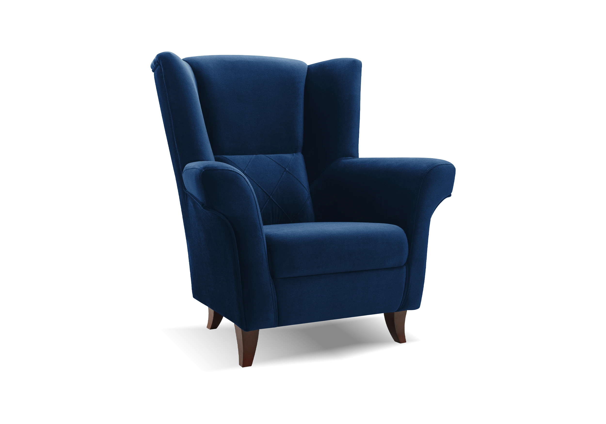 Fotel wykonany jest z tkanin welurowych, miłych i przyjemnych w dotyku.