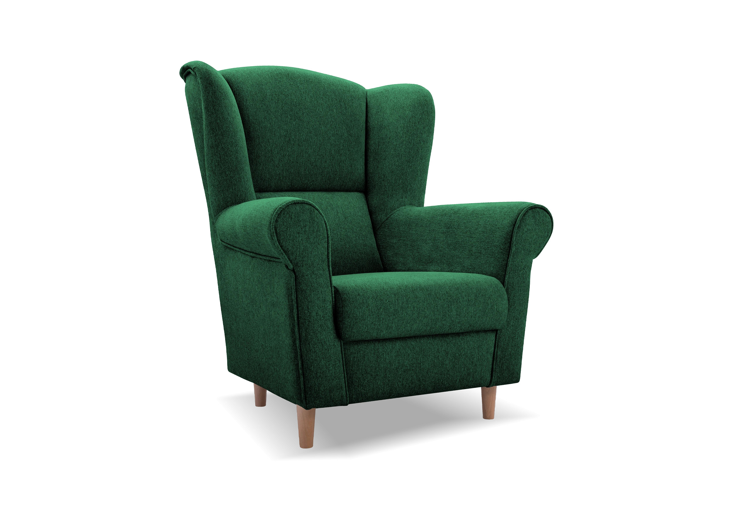 Fotel Uszak Loft 1 świetnie współgra z wnętrzami urządzonymi w stylu skandynawskim bądź nowoczesnym. Cechą charakterystyczną tego fotela są drewniane nóżki, doskonale wyprofilowane niezwykle wygodne oparcie, które świetnie dopasuje się do pleców zapewniając komfort wypoczynku. Fotel pięknie ozdobi każde pomieszczenie, z tyłu obity jest materiałem pod kolor całości.