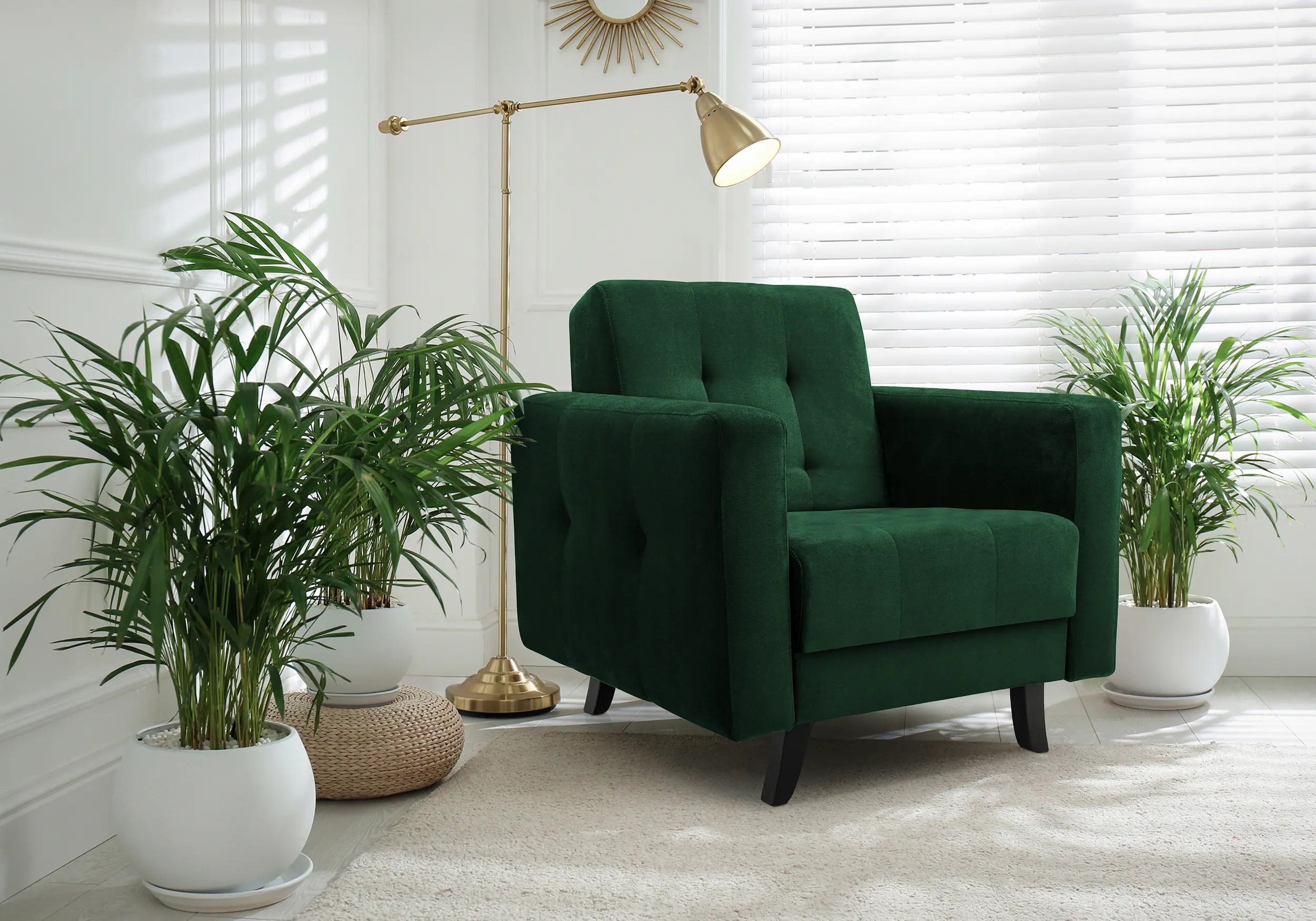 Fotel LIZBONA świetnie współgra z wnętrzami urządzonymi w stylu skandynawskim bądź nowoczesnym. Cechą charakterystyczną tego fotela są drewniane nóżki oraz pikowania na oparciu i boczkach. Fotel z tyłu obity jest materiałem pod kolor całości.