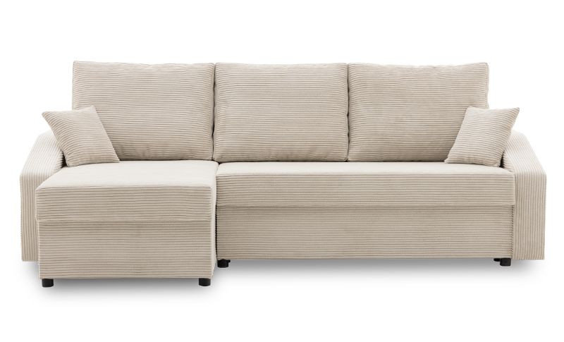 Doskonałym rozwiązaniem w tym modelu jest funkcja spania oraz dwa praktyczne pojemniki, które pozwalają na wygodne przechowywanie pościeli i innych przedmiotów. Narożnik Dorma wyposażony jest w system na ślizgach, co umożliwia szybkie i łatwe jego rozłożenie.