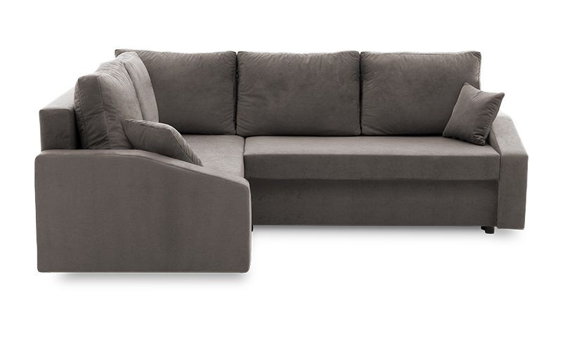 Prosta, nowoczesna bryła. Funkcja spania, która jest cenna, gdy potrzebujesz dodatkowego miejsca dla gości lub chcesz używać narożnika do okazjonalnego noclegu czy komfortowej drzemki. Narożnik posiada również aż 2 pojemniki na pościel, ma tapicerowany tył i prosty, ślizgowy mechanizm rozkładania.