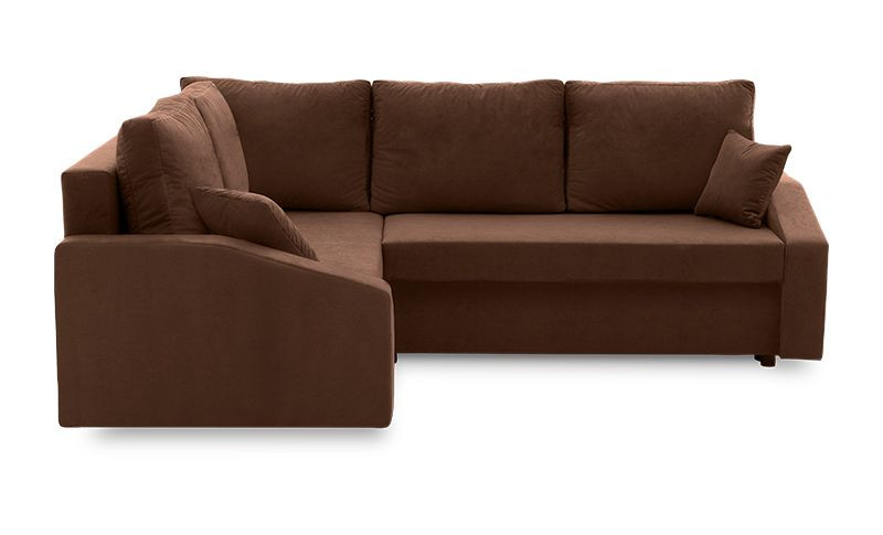 Prosta, nowoczesna bryła. Funkcja spania, która jest cenna, gdy potrzebujesz dodatkowego miejsca dla gości lub chcesz używać narożnika do okazjonalnego noclegu czy komfortowej drzemki. Narożnik posiada również aż 2 pojemniki na pościel, ma tapicerowany tył i prosty, ślizgowy mechanizm rozkładania.