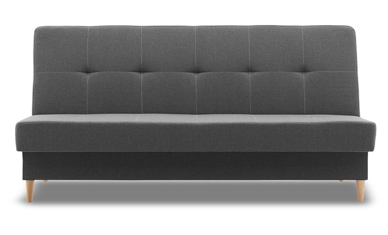 Solidna konstrukcja na drewnianych nóżkach, brak podłokietników i poduszek idealnie sprawdzą się w aranżacji małego pomieszczenia. Elegancji i stylu dodają przeszycia na siedzisku i oparciu, a wysokie nóżki pomogą w utrzymaniu czystości pod meblem.