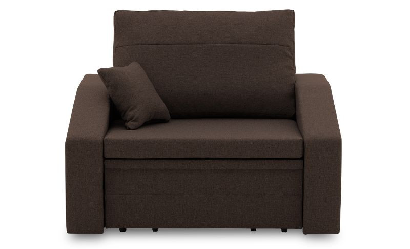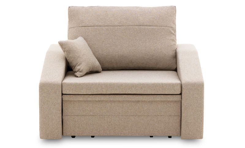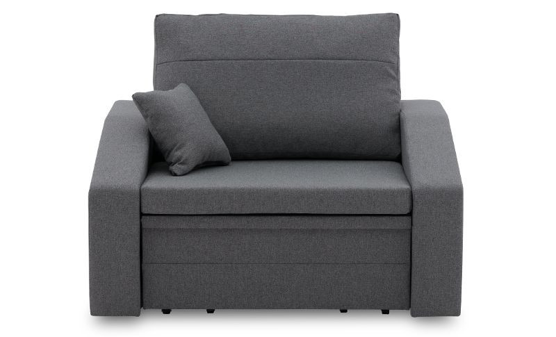 VERTICO to mały fotel rozkładany o szerokości siedziska 80. Siedzisko wykonane jest z wytrzymałej i wygodnej pianki, natomiast oparcie wykończone jest dopasowaną dużą poduszką oparciową. Estetycznym detalem są lekko zaokrąglone podłokietniki.